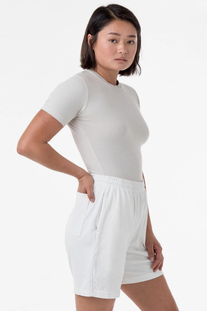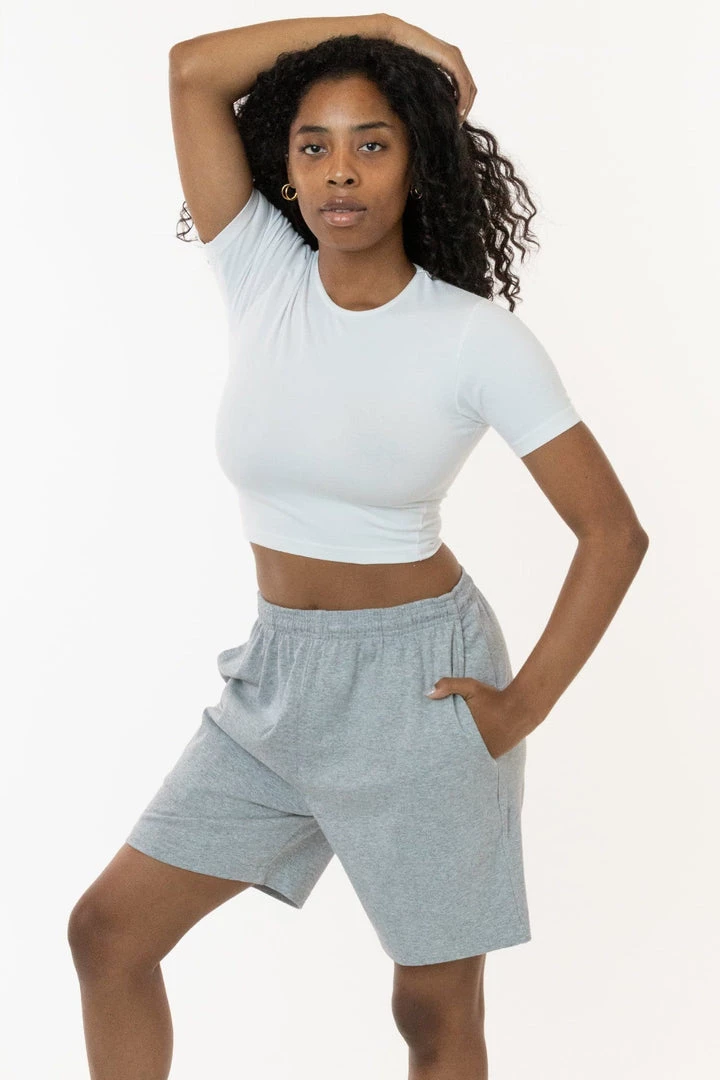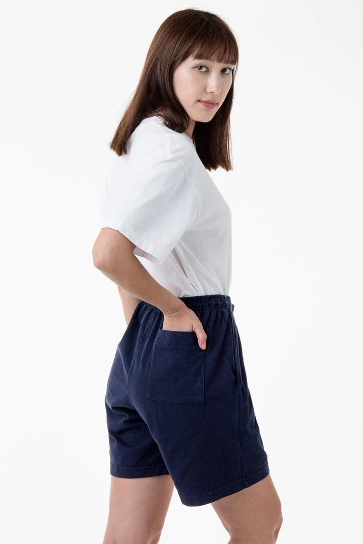 The Mid-Length Heavy Jersey Shorts, featuring a drawcord elastic waistband for a personalized fit, and a length cut for optimal coverage. We’ve included 2 front pockets as well as a back pocket to keep all your essentials close. These shorts are part of our garment dye line, which is always custom dyed, shrink-free and sewn with 100% USA-grown cotton.