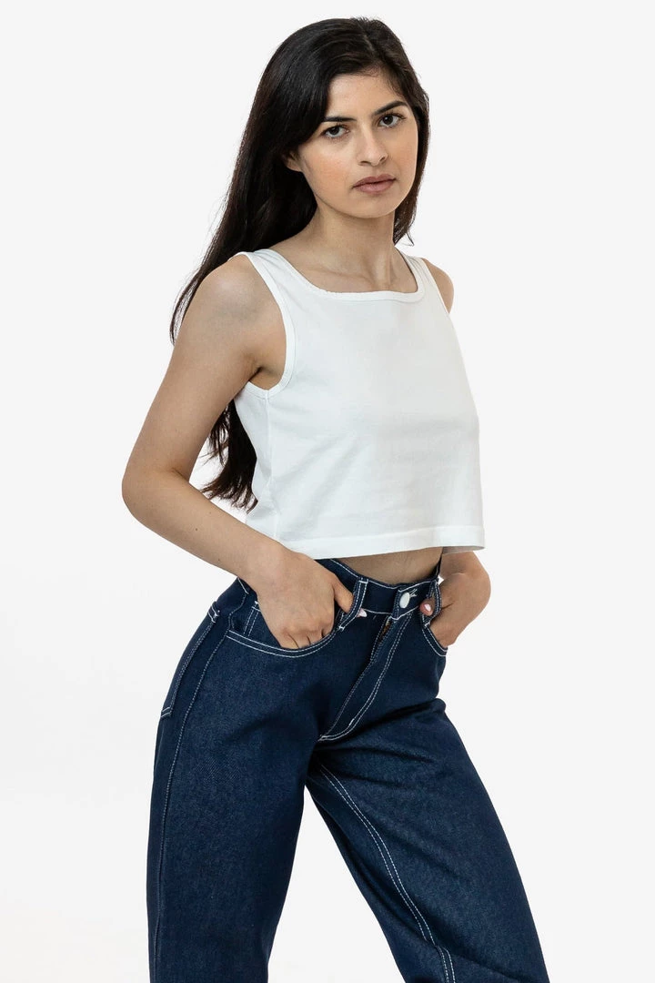 The Crop Tank is the perfect combination of a sophisticated yet playful silhouette. A squared neckline adds sophistication , while a fitted and cropped length adds to the playfulness of this garment. Shorter and more fitted than most of our styles, we recommend sizing up for a breezier fit. Only Black, Off-White, and Atlantic Green available in XS.