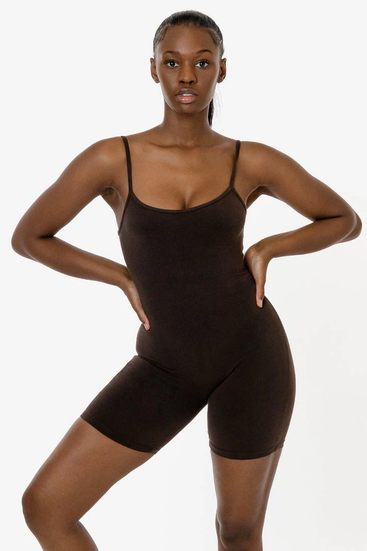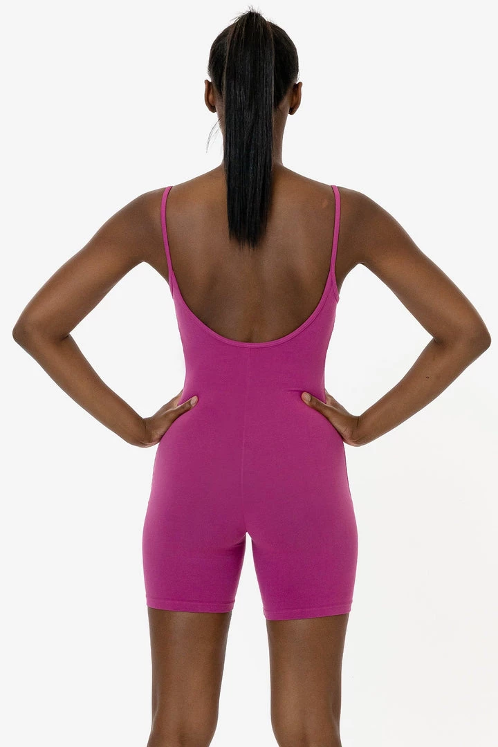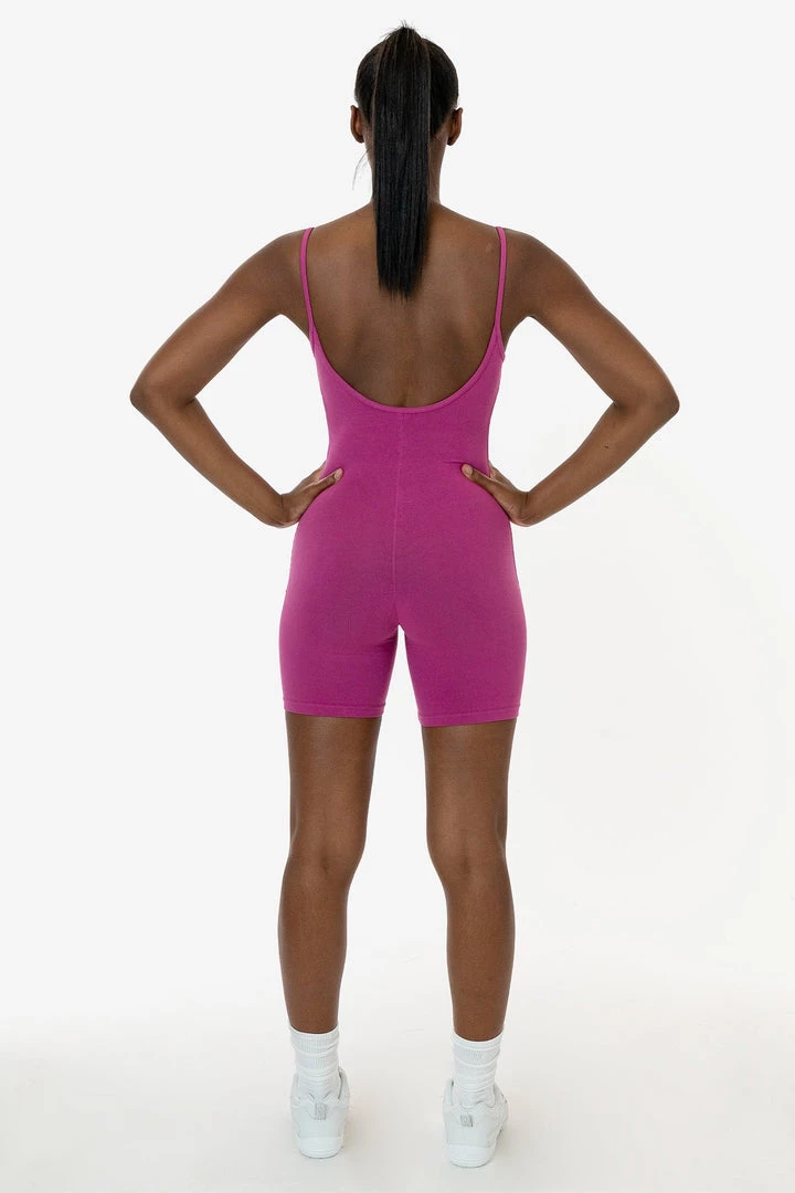 The Spaghetti Scoopback Biketard is a comfortable and universally flattering style that features a scoop back and mid-thigh length. This fitted romper is made of our premium, heavyweight cotton spandex with extra compression. This style can be worn effortlessly on around the house and in the day time. This style has also been garment dyed and enzyme washed providing unique colorways and rich, smooth texture.