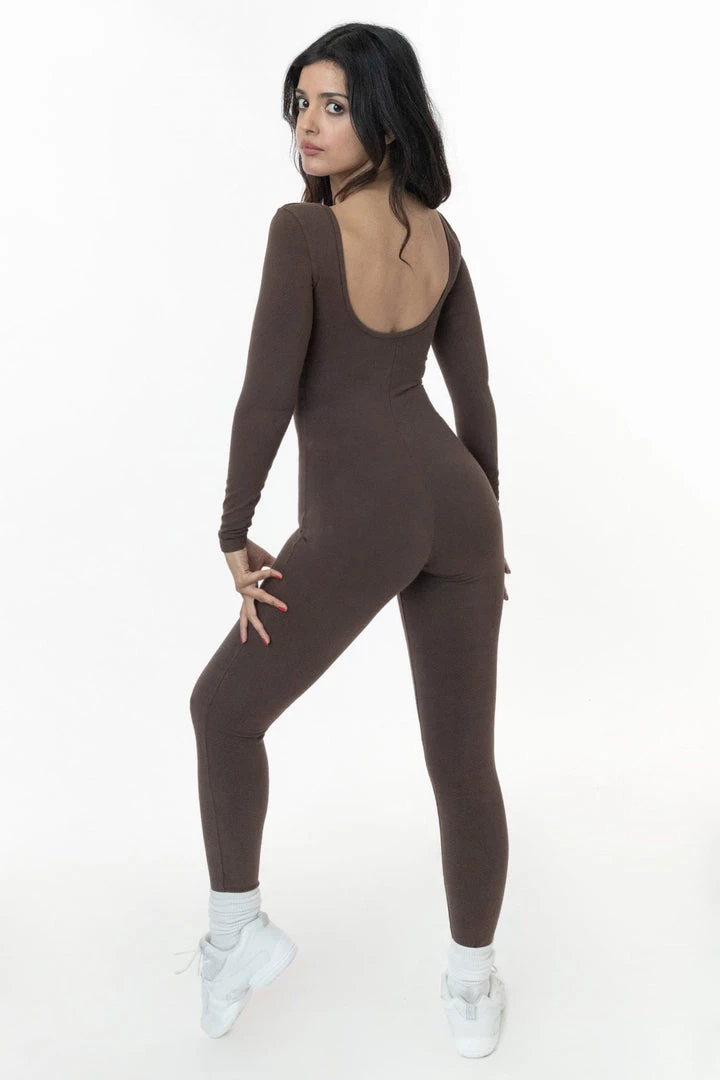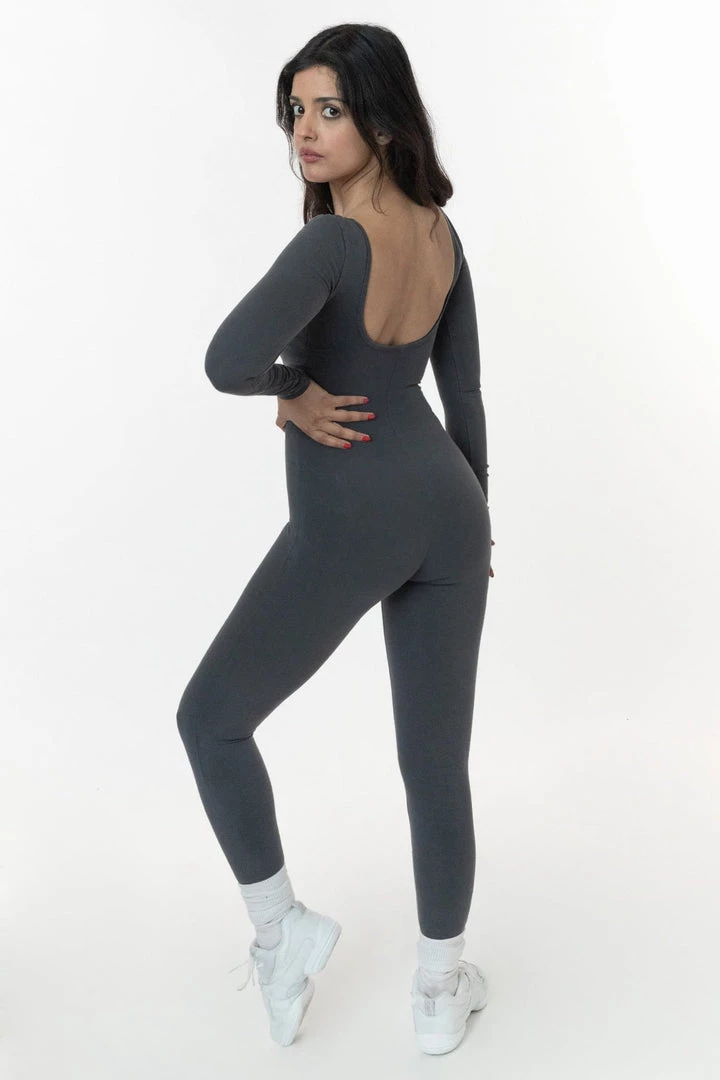 The Garment Dye Long Sleeve Unitard is made for movement. This essential one piece features long sleeves and a classic scoop neck with scoop back. Wear this fitted style alone for a flattering look that showcases your body or layer with jeans or sweats for extra warmth in the winter. This unitard is made of a heavyweight cotton spandex with extra compression and as been garment dyed and enzyme washed providing unique colorways and rich texture. This style can be worn effortlessly on its own or paired with a crewneck sweatshirt for colder days.