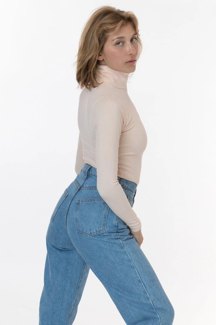 Our classic turtleneck now available in our favorite neutrals and statement bright colors to match our garment dye collection. A tight, fitted turtleneck made of high quality cotton spandex with a full fold-over turtleneck to keep you warm all season long. This top features a mid-length that can still be tucked into high waisted styles and is ideal for layering without adding bulk underneath your favorite sweaters and jackets. We recommend sizing up if you prefer a less fitted look. Please note, this style is made of a heavier knit compared to our regular cotton spandex styles.