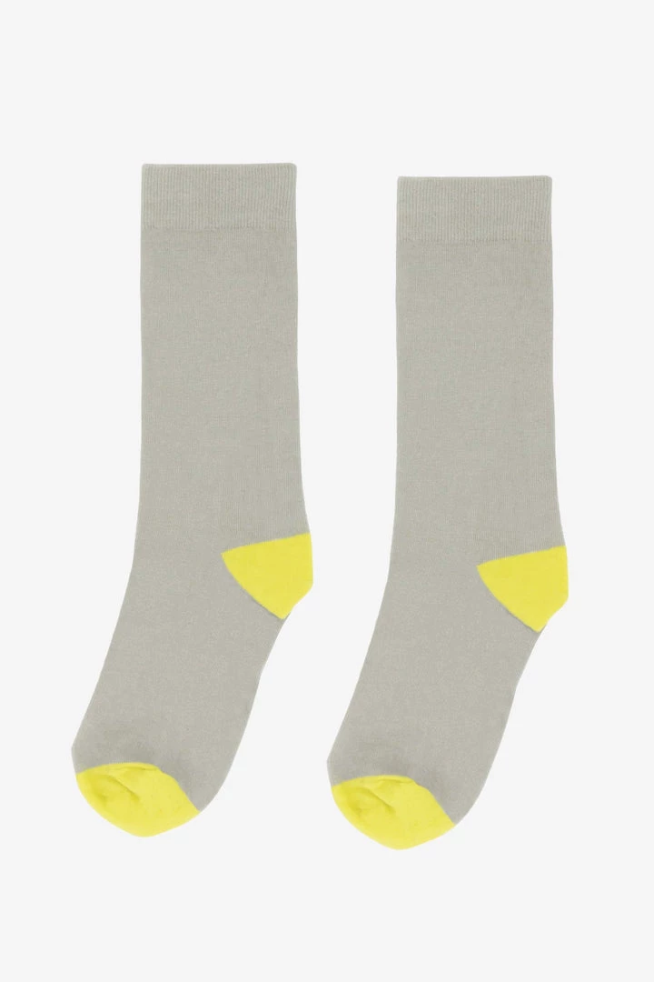 A novelty, 2-tone sock with contrasting heel and toe. Crew-length. Unisex.