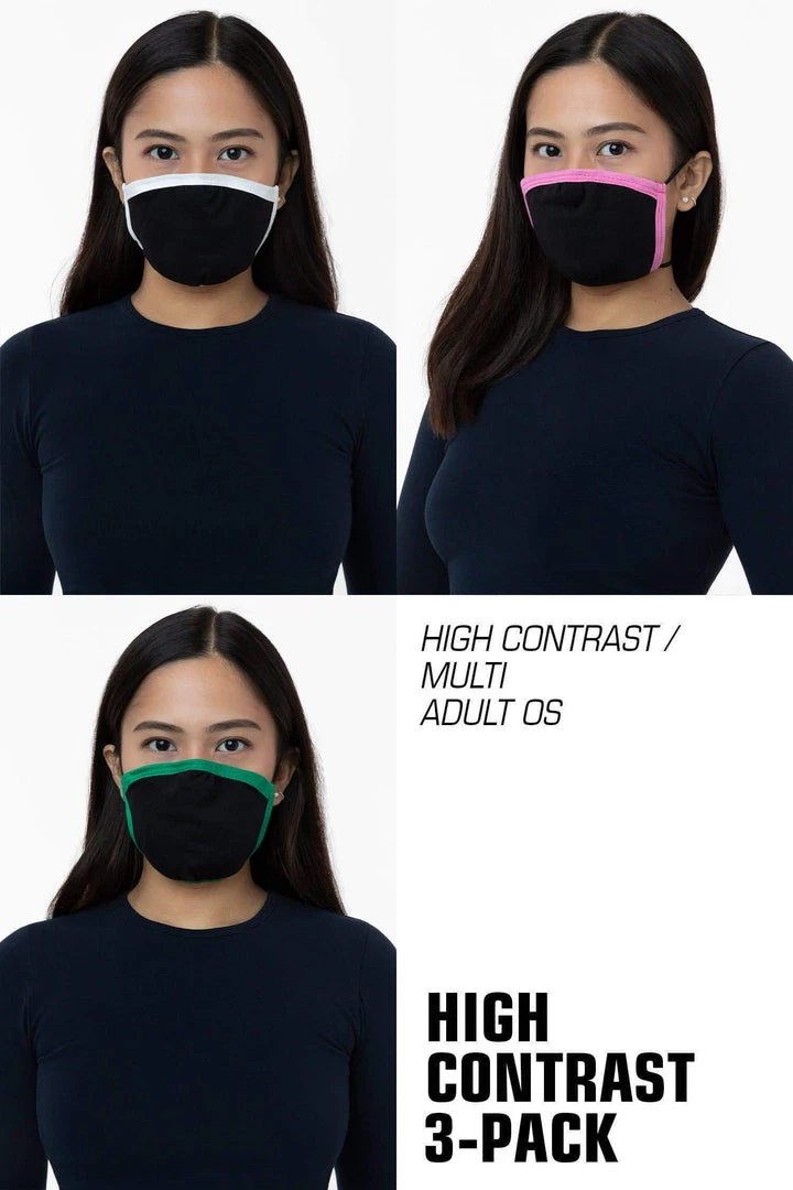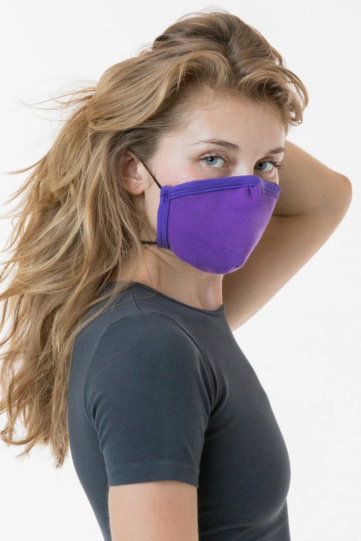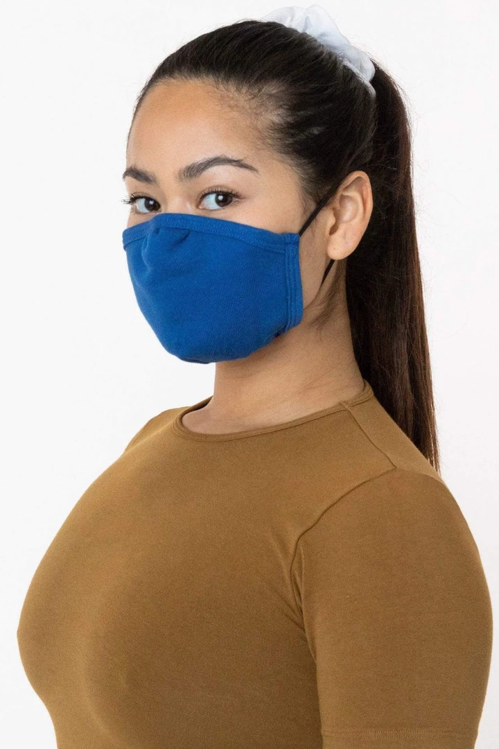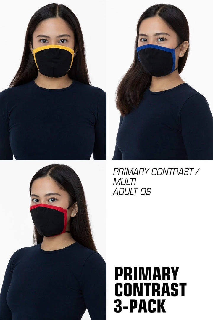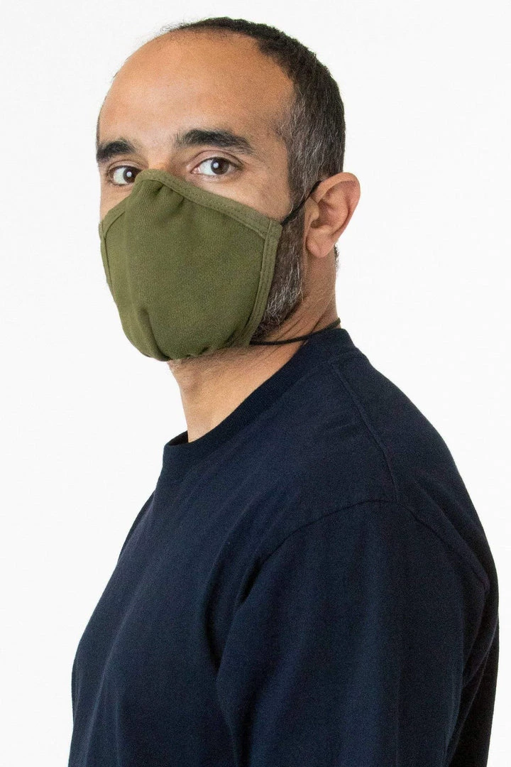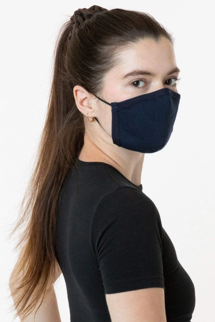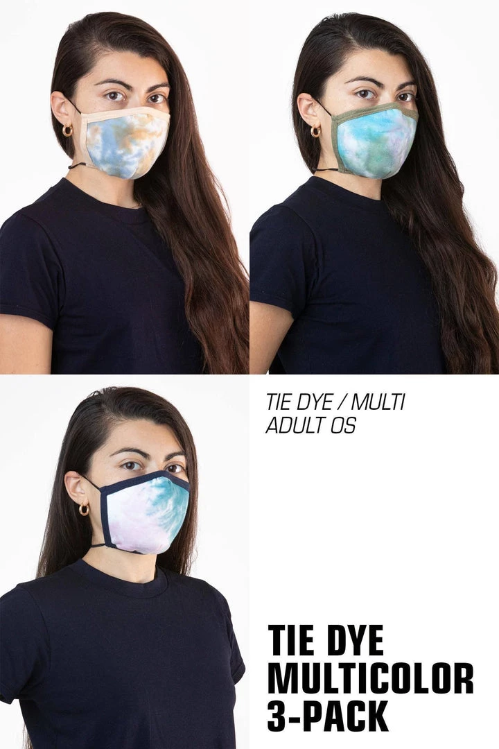 Our 3-Pack face mask is made of 100% cotton and features an adjustable nose that you can form to the contours of your face. 2 straps to be worn around the head and neck that can be tied and tightened to preferred fit. Mask is made of a thick French Terry fabric constructed of 3 yarns, weighing no less than 12 ounces per sq yard (400 GSM). Fabric is laundered prior to construction.