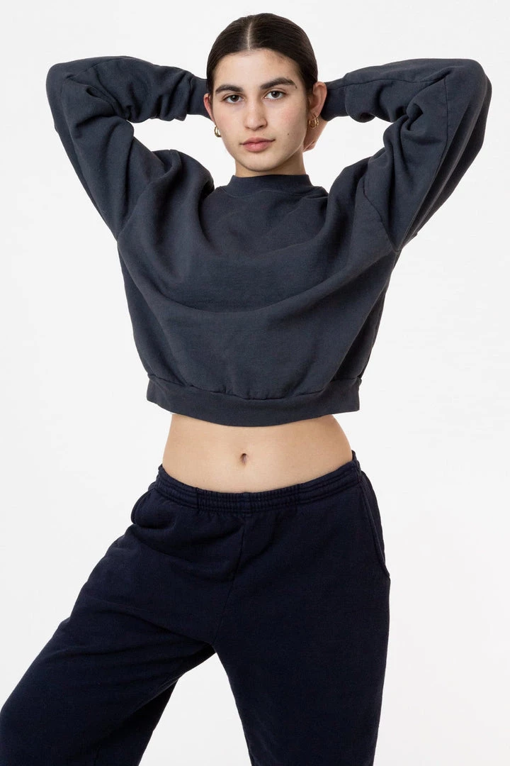 This Oversized Cropped Sweatshirt is made from our 14oz/yd2 Heavy Weight Fleece and Garment Dyed for a true unique finish. The sleeves are slightly dropped and the neckline is higher for a Mock Neck fit. Perfect with a pair of High Waist Pants or layering piece on a cold day.