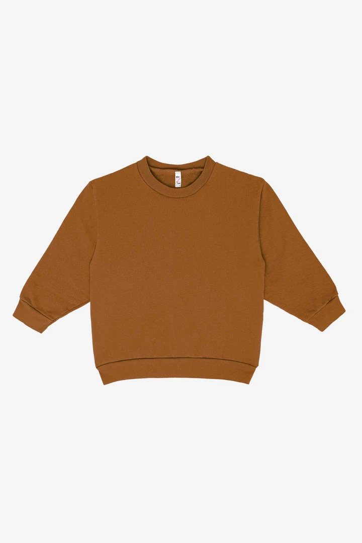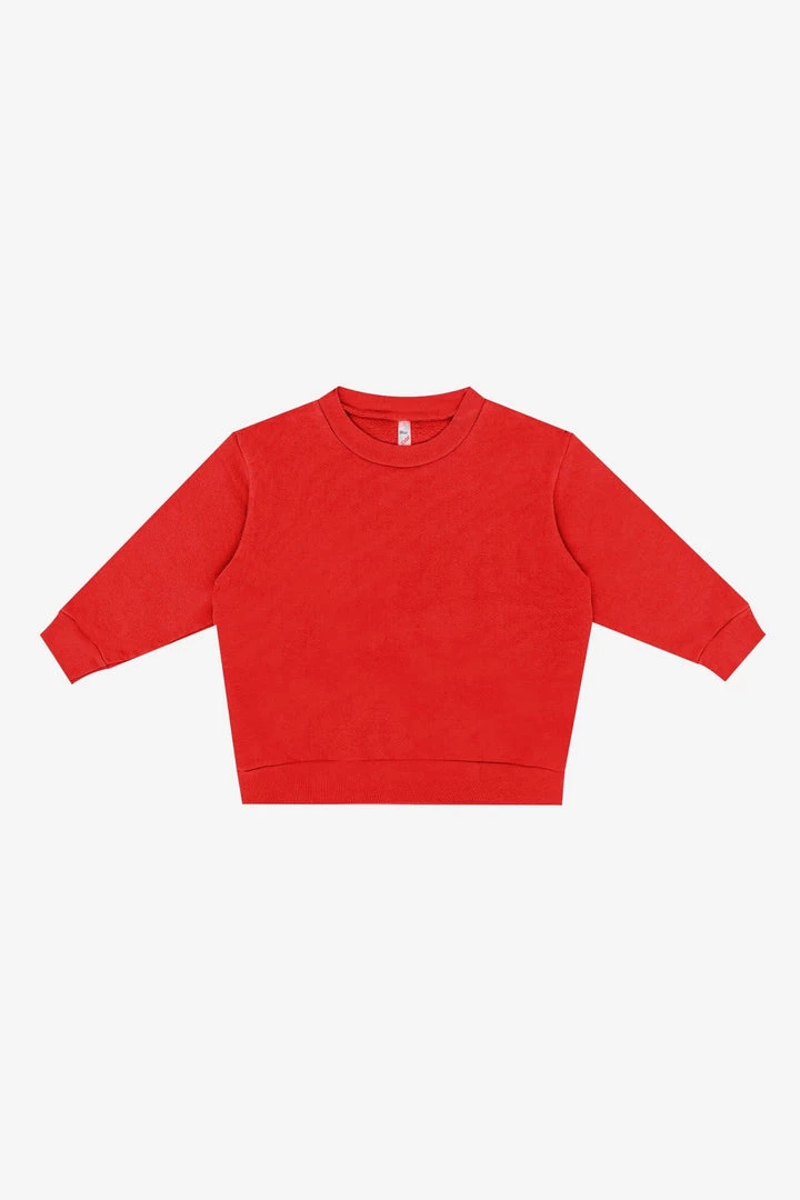 A 14 oz. Heavy Fleece sweatshirt made for toddlers. Features drop shoulders, long sleeves and a crew neckline.