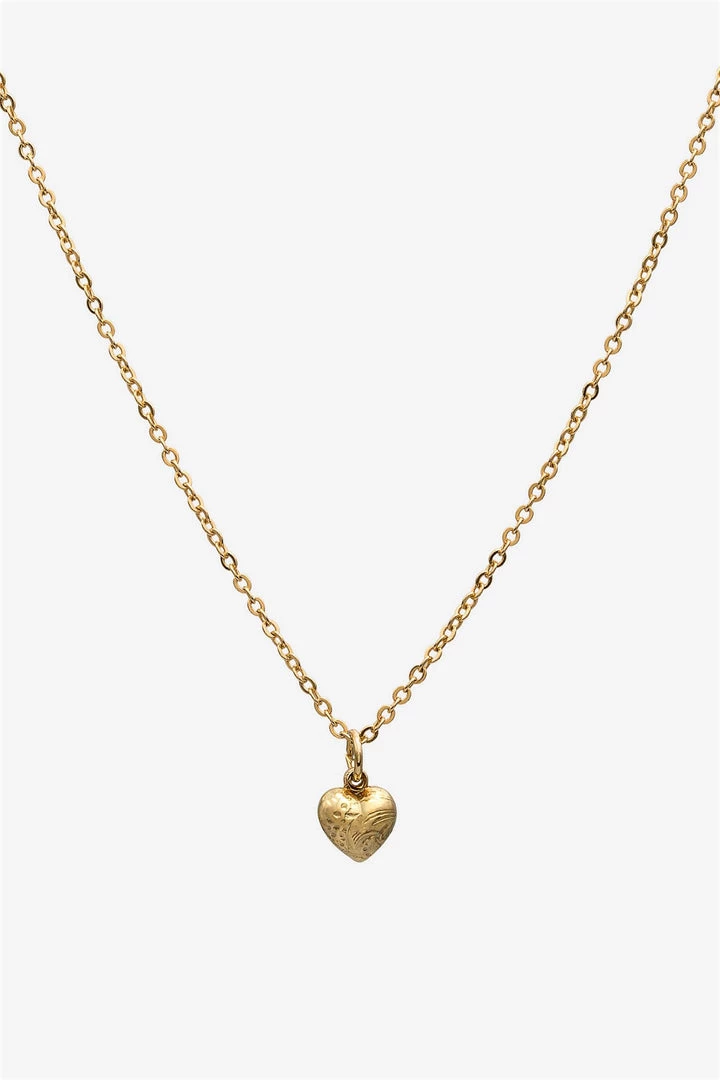 The heart represents a flower paisley design. Pendant in 14k gold-dipped. On a 16″ chain.