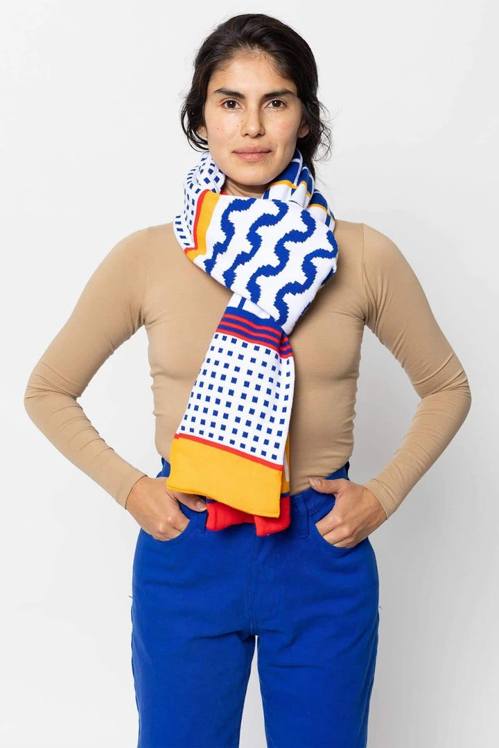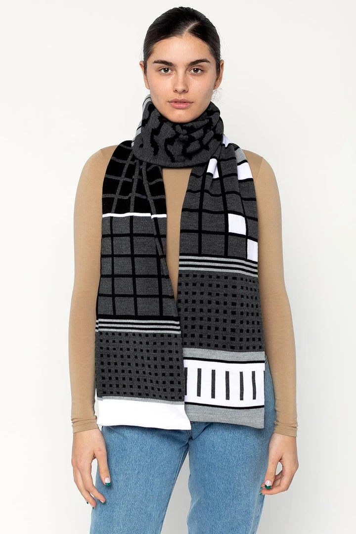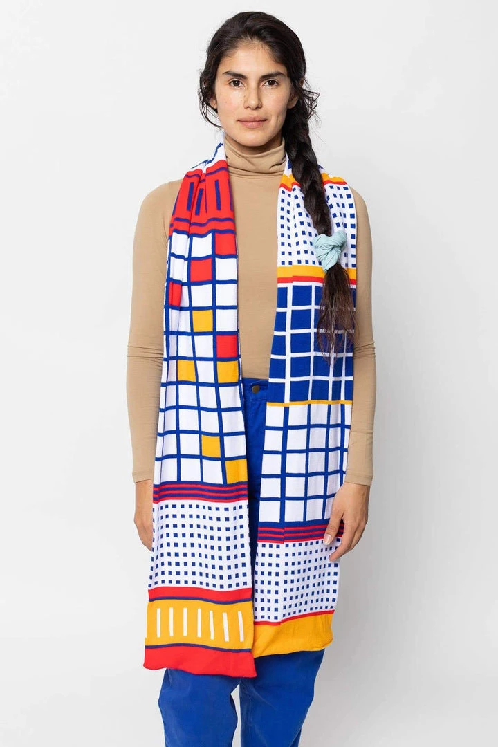 We couldn’t help but be inspired by the outrageous whimsy of Memphis Design originating from 80s Milan. This Unisex jacquard scarf is the perfect happy accessory to compliment your winter layers.
