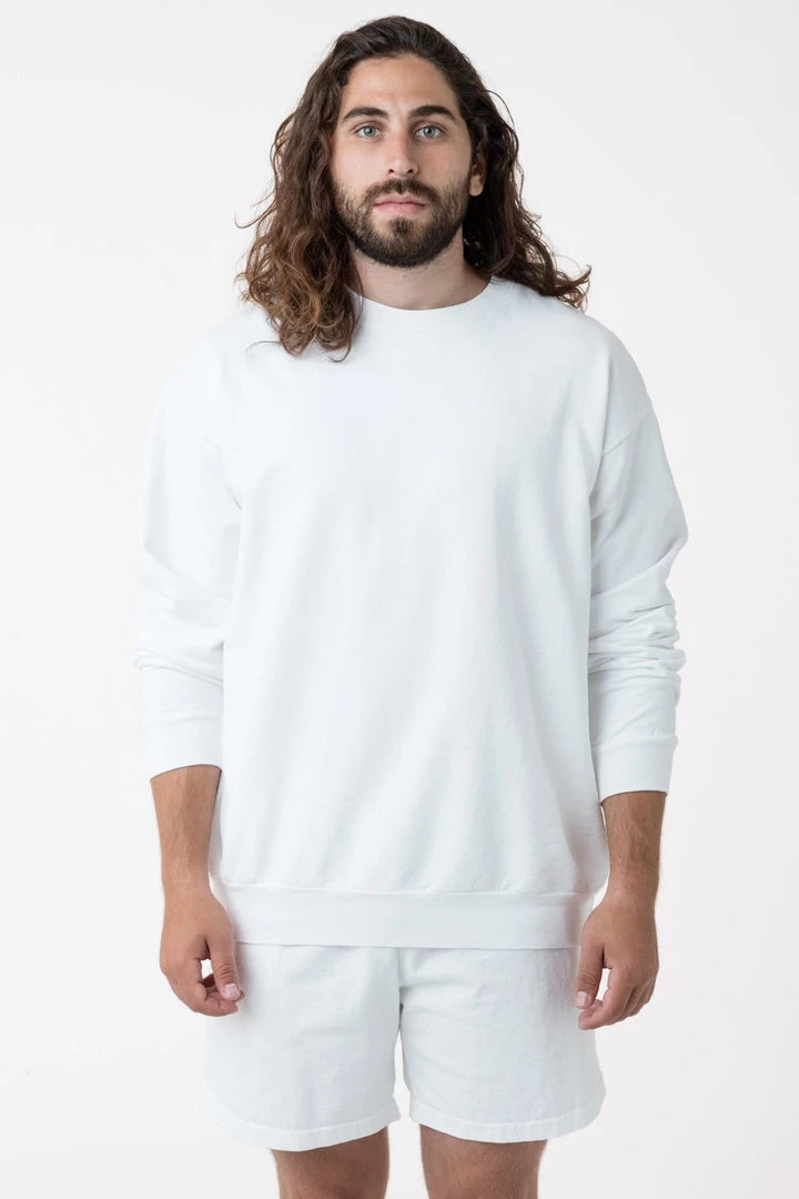 Versatile Mid-Weight French Terry pullover that works as a layering piece in winter or a go-to sweater for that Los Angeles fall weather. This sweater is part of our garment dye line, which is always custom dyed, shrink-free and sewn with 100% USA-grown cotton.