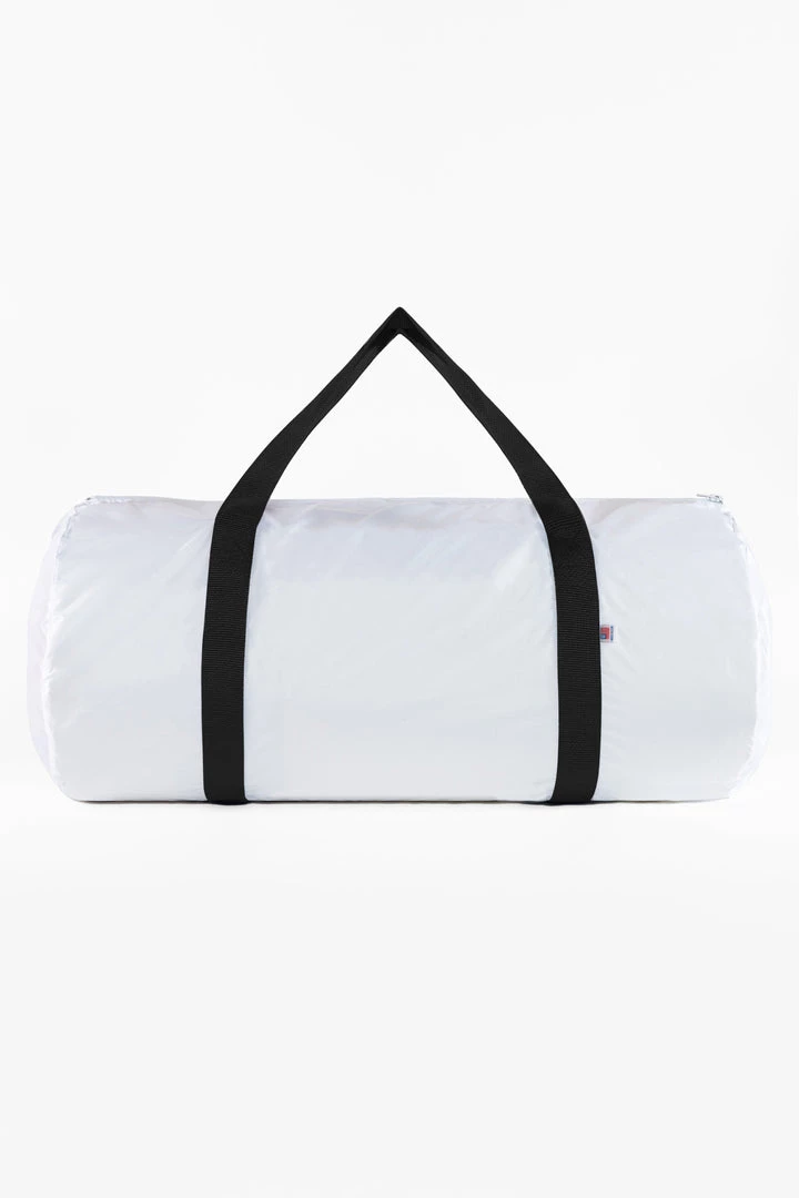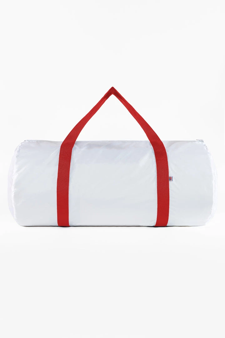 A traditional sporty feel for the gym, traveling, or anywhere you need with durability that lasts. This bag has a height of 13.5″ and bottom width of 40″ with versatile nylon webbing straps that fit comfortable in your hand or over your shoulder. Made in South Central, Los Angeles by workers earning fair wages.