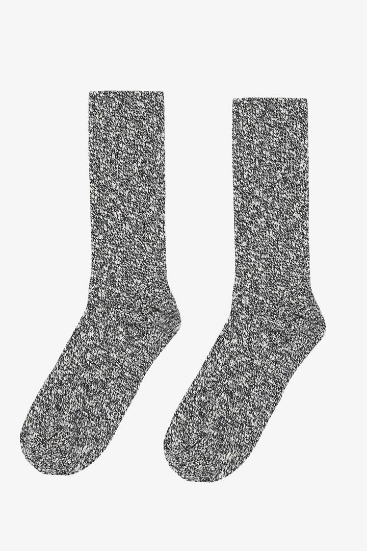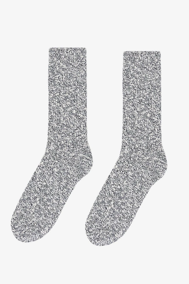 A novelty, marled crew-length sock. Unisex.