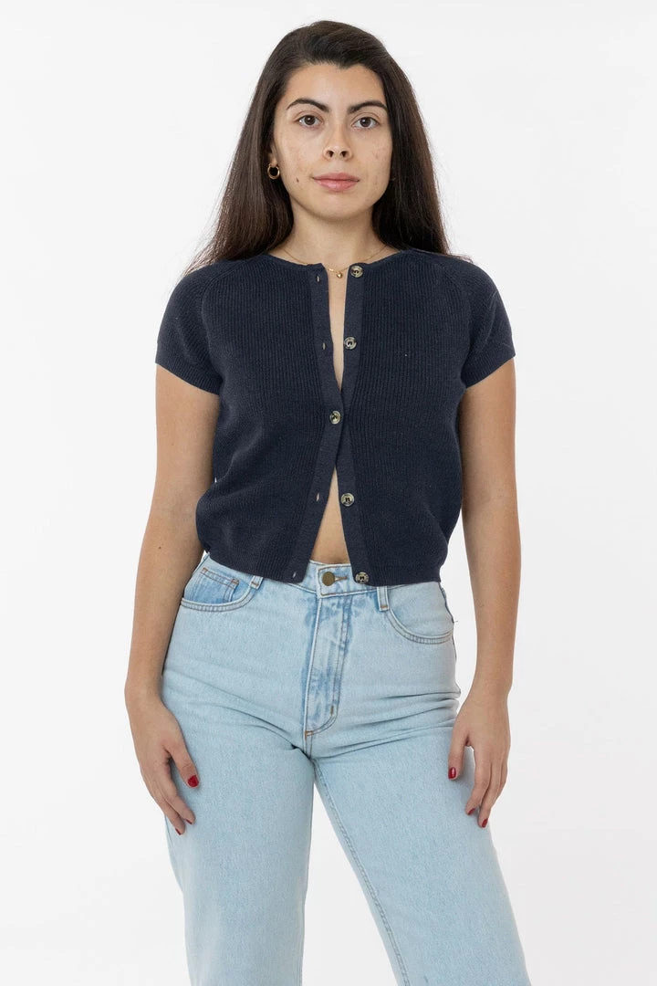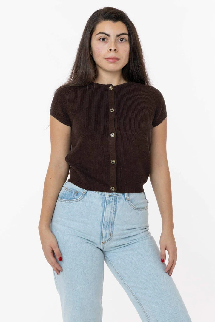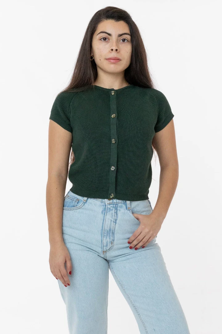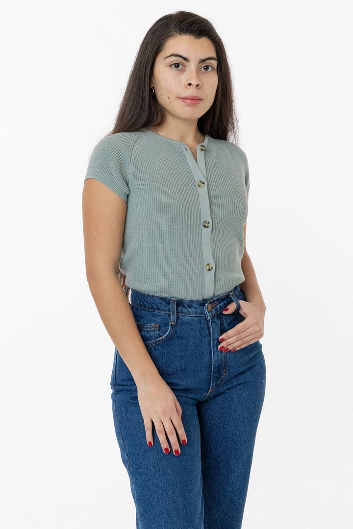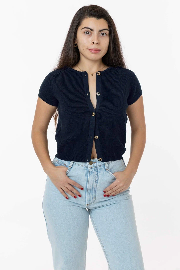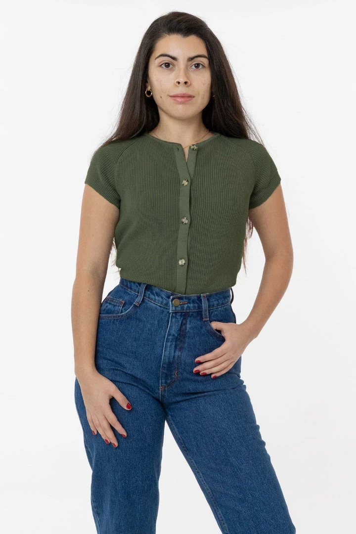 We’ve taken the usually sporty shape of the raglan sleeve and elevated it. This sweater ends a bit past the belly button so you can wear it tucked in or out and can be layered as a cardigan or worn on its own. Try it with our Baby Rib tees and tanks or jeans for a classic look or go flirty with it more unbuttoned to show a little skin.