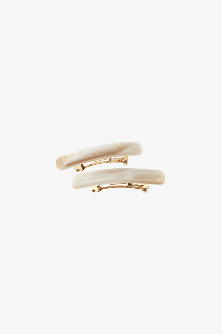 These Mini Rectangle Barrettes are a chic addition to your collection. These 90s inspired accessories are handcrafted in France with luxurious cellulose acetate for an extremely durable and elegant product with a polished finish. These dainty barrettes offer more holding power than traditional bobby pins, making them an exceptionally versatile styling solution . Pull back your hair for a lovely look with this beautiful barrette set.