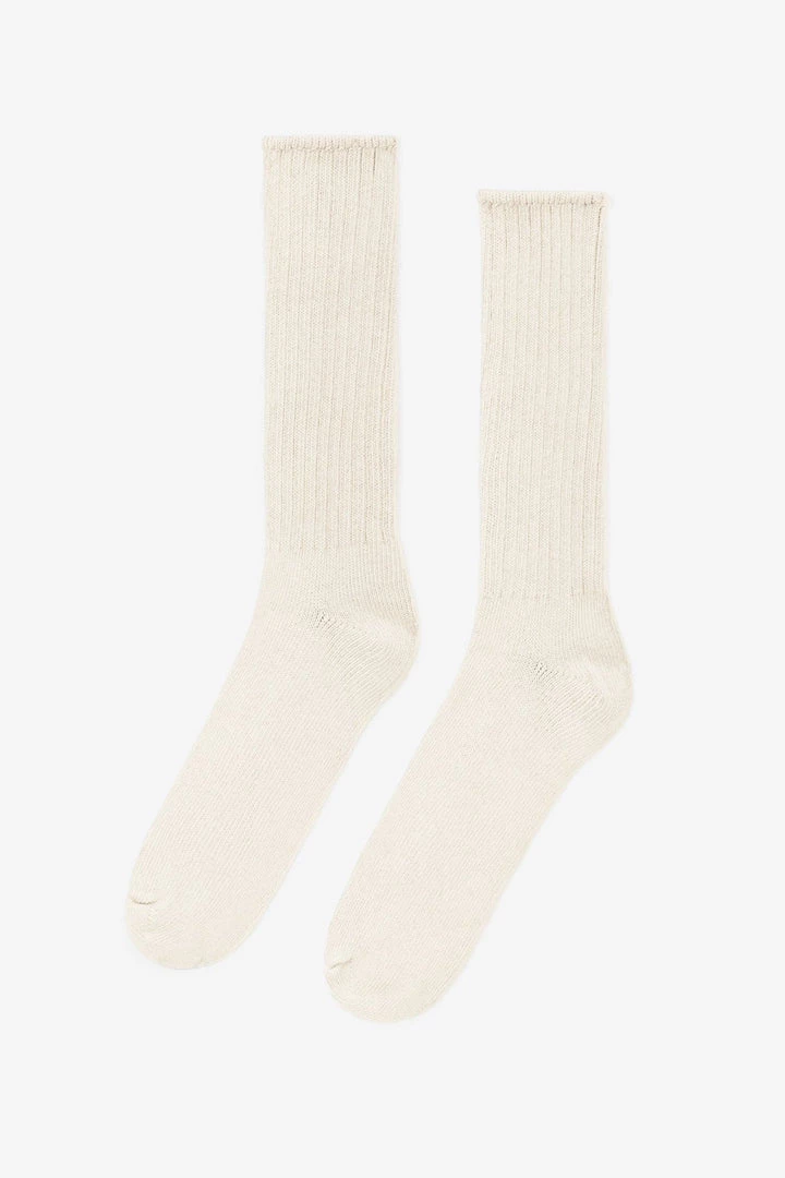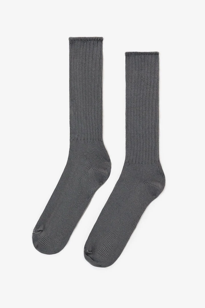 This crew-length sock has a wide rib pattern and and have been garment dyed in our bestselling colors. These socks are perfect to wear scrunched, folded over or all the way up to accessorize your looks. Features an elastic top to keep them up throughout the day.