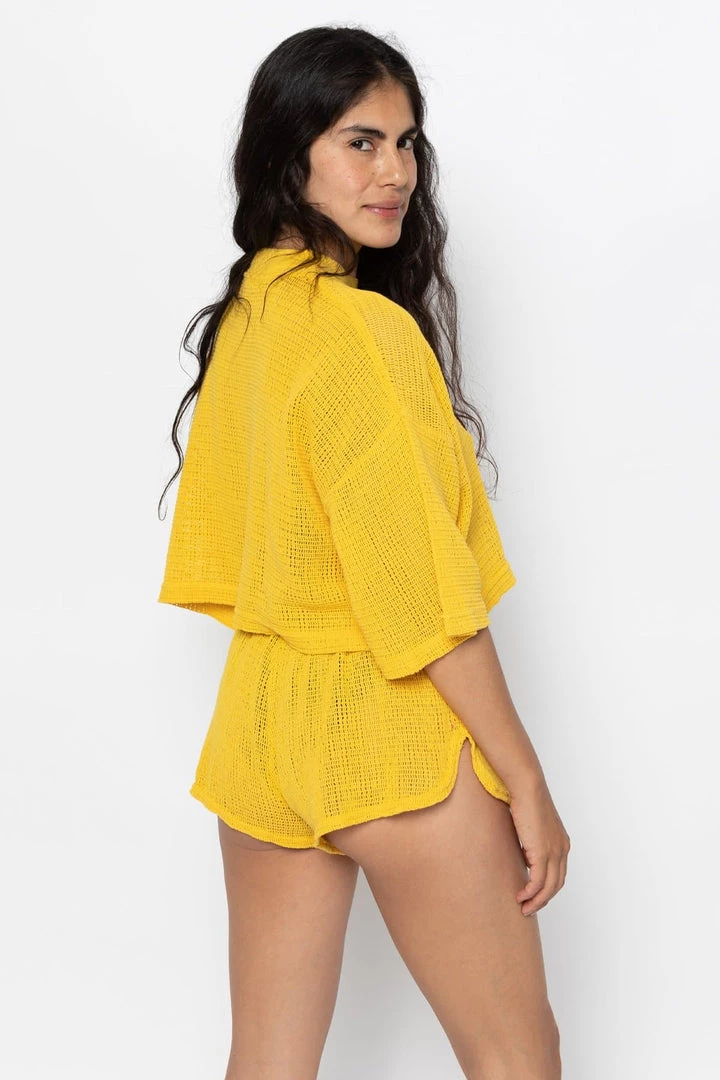 Our cotton mesh fabric is knit locally to be breathable and lightweight, making it a universal summer staple.