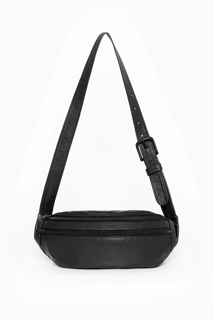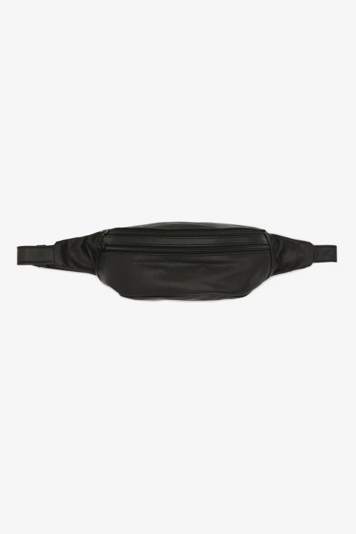 This waist bag is made of genuine lambskin leather for a sophisticated update on our classic fanny pack. The leather fanny pack features 2 zipper pouches and an adjustable belt to style this bag however you desire. Wear this piece around your natural waist, over your shoulder or as a crossbody style.