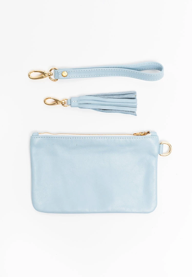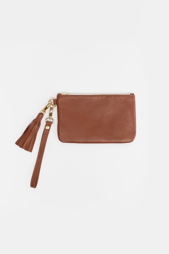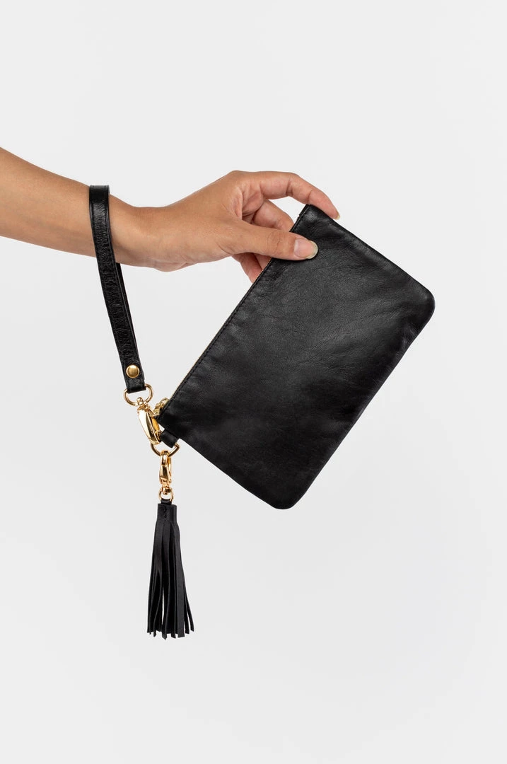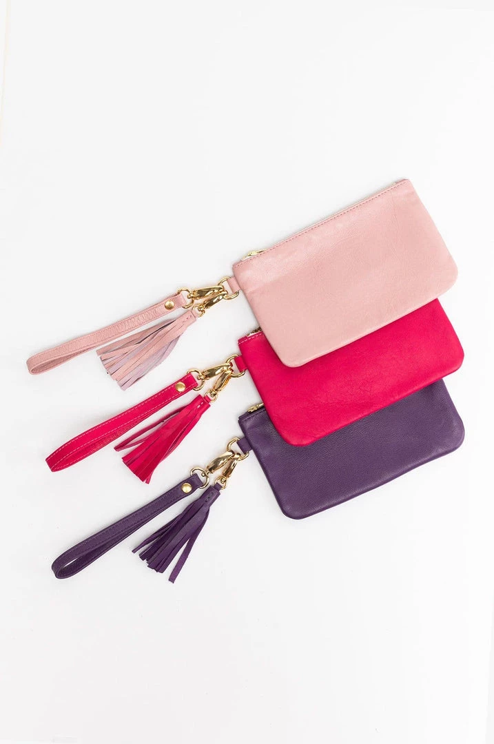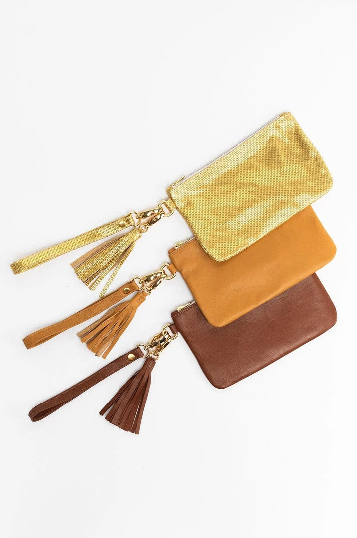 The Wristlet Pouch is the perfect size to accommodate your daily essentials: phone, keys, ID. Use it on its own or to organize your life in a larger bag. We sourced gold plated hardware for the tassels and wrist straps; Both are removable. This item was designed with versatility in mind and makes for an easy gift for others or yourself.