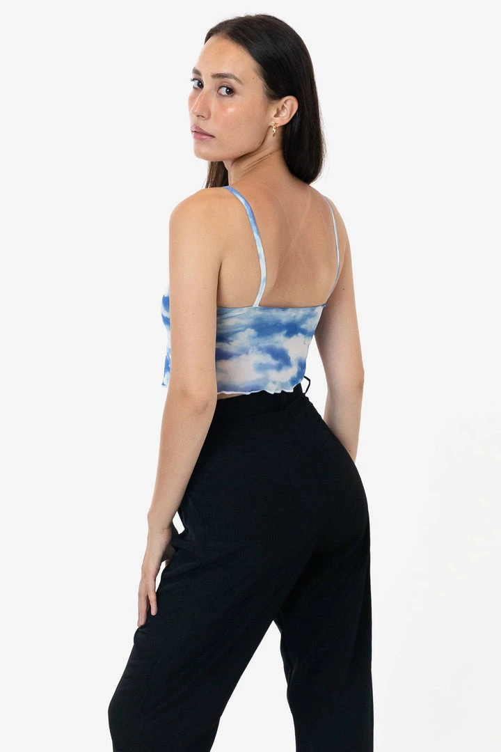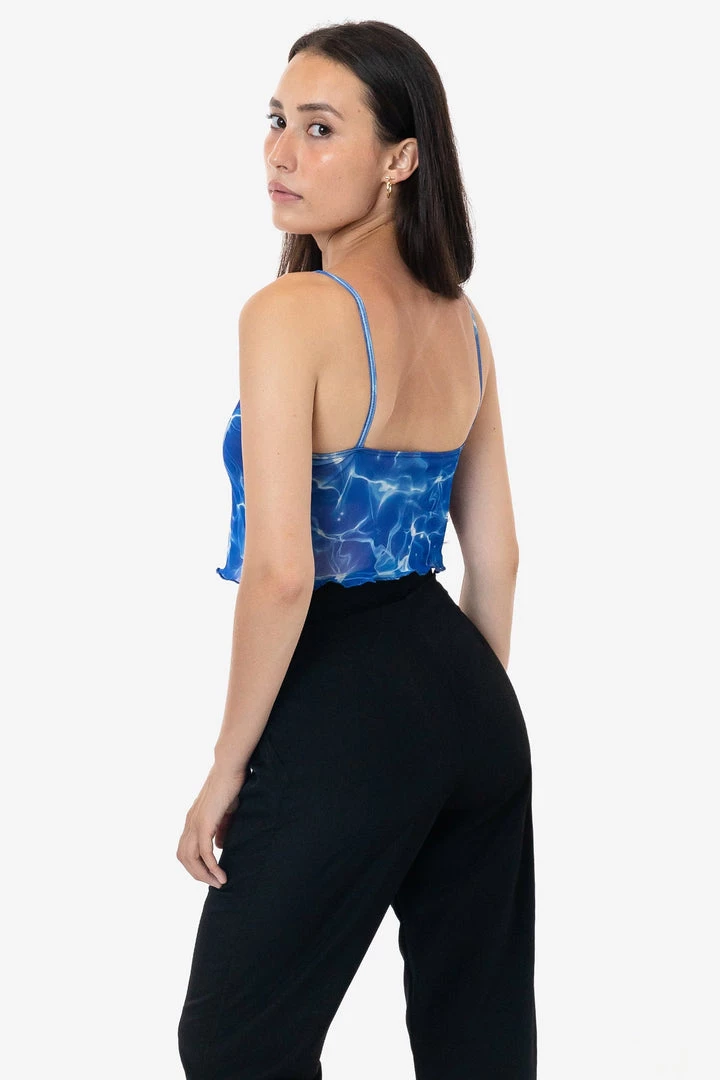 The Printed Micro Mesh Spaghetti Tank has a perfect cropped fit, slinky drape and delicate merrow hem. To make styling this top easy for you, we’ve added a cotton spandex jersey shelf lining so there is no need to worry about exposed bra straps. We recommend pairing this top with our matching printed micro mesh skort for a youthful, feminine 2-piece outfit or dressing up this tank with your favorite pants and strappy heels for night time. Try layering it with our printed micro mesh button up as an alternative to a jacket.