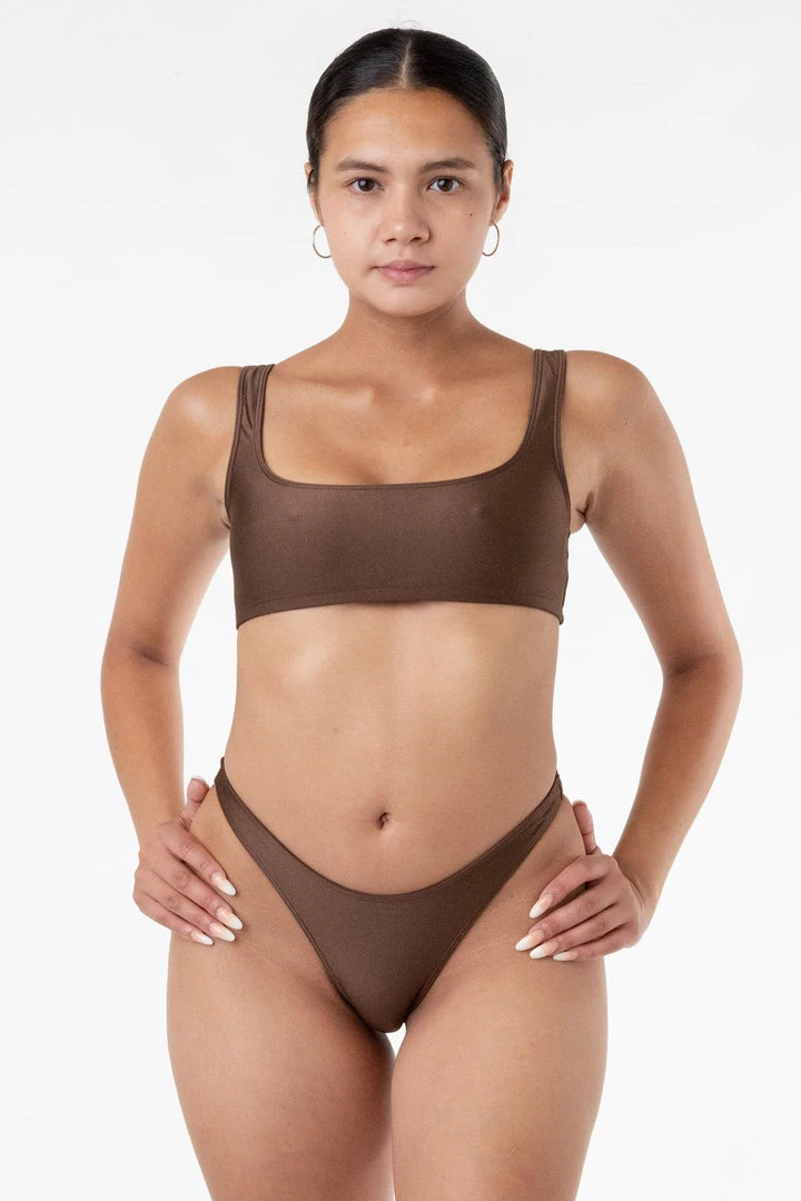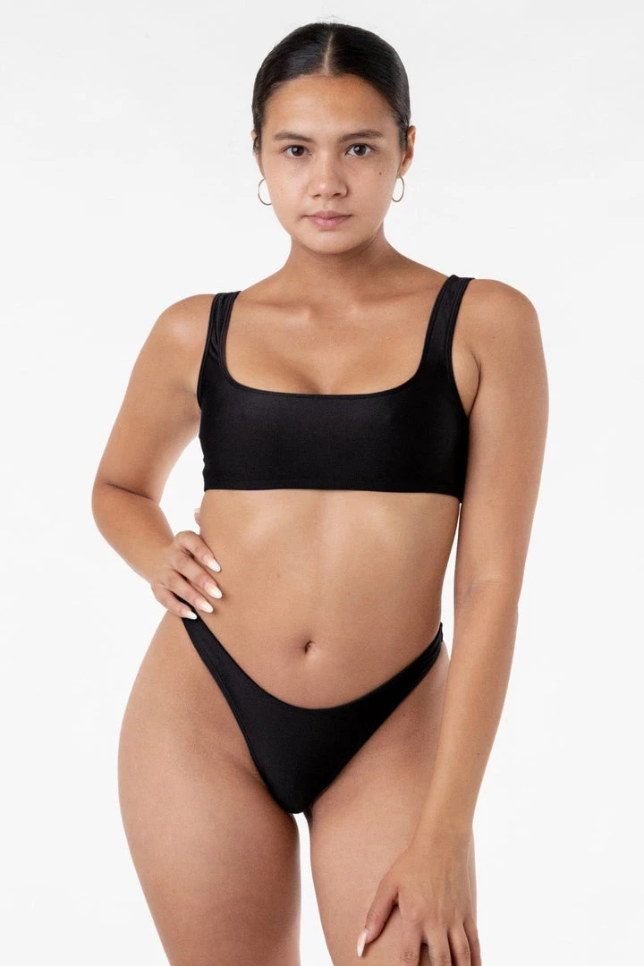 This cheeky bikini bottom is made to highlight your hips and accentuate the shape of your body. This style features curved hems at the top of the front and back and high leg openings. These bottoms are fully lined for use in water. Mix and match this style with any of our Nylon Tricot bikini tops.