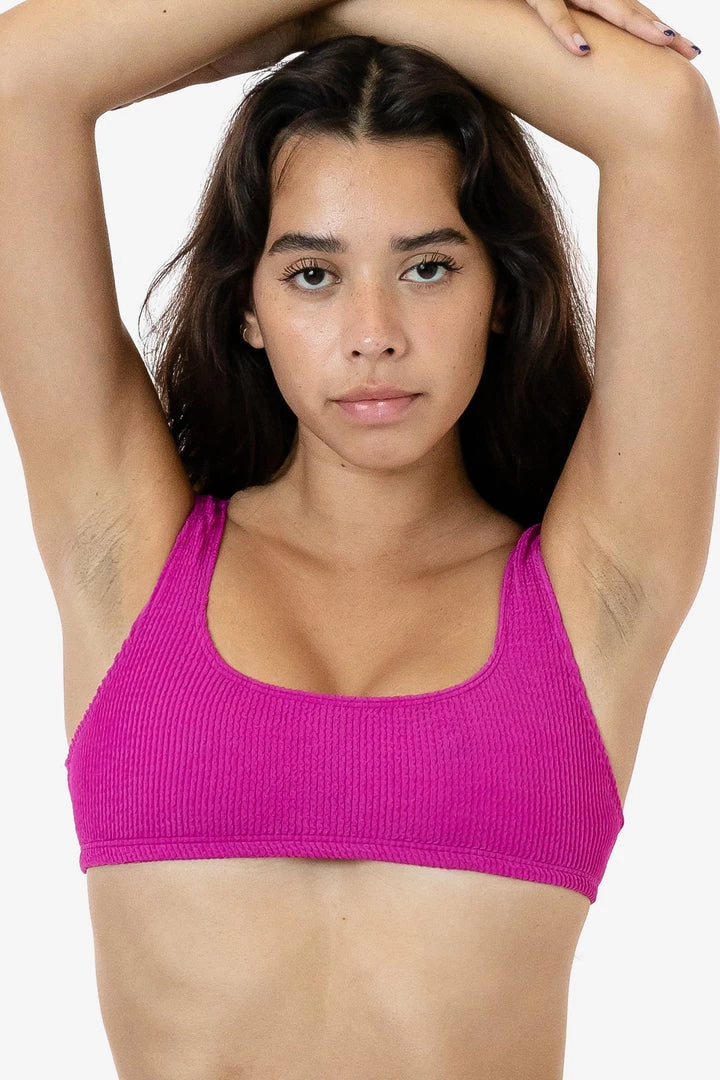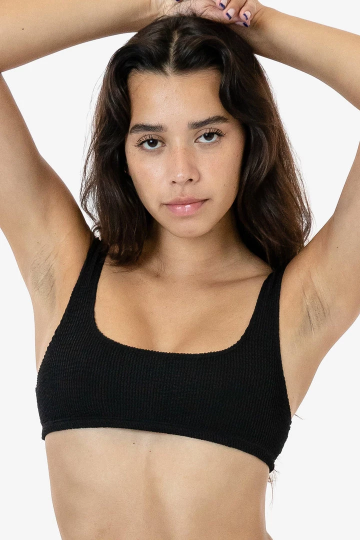 Our crinkle swimwear collection is made of a super stretchy, playfully textured fabric that conforms to fit your body. This top features our classic square neck tank design and pairs well with the matching RPC3009 Crinkle High Cut Bikini Bottom or RPC3030 Crinkle Hot Shorts. This style is unlined due to the nature of the fabric, but is suitable for use in water. Perfect for the pool or sunbathing in the park.