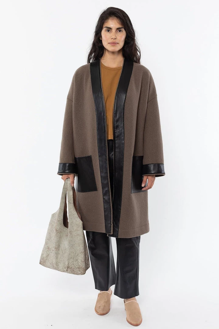 We purposelessly designed this One Size Fits All coat with a relaxed fit to accommodate most sizes and layering. It can be worn open or overlapped for a double-breasted look and cinched at the waist with a belt.