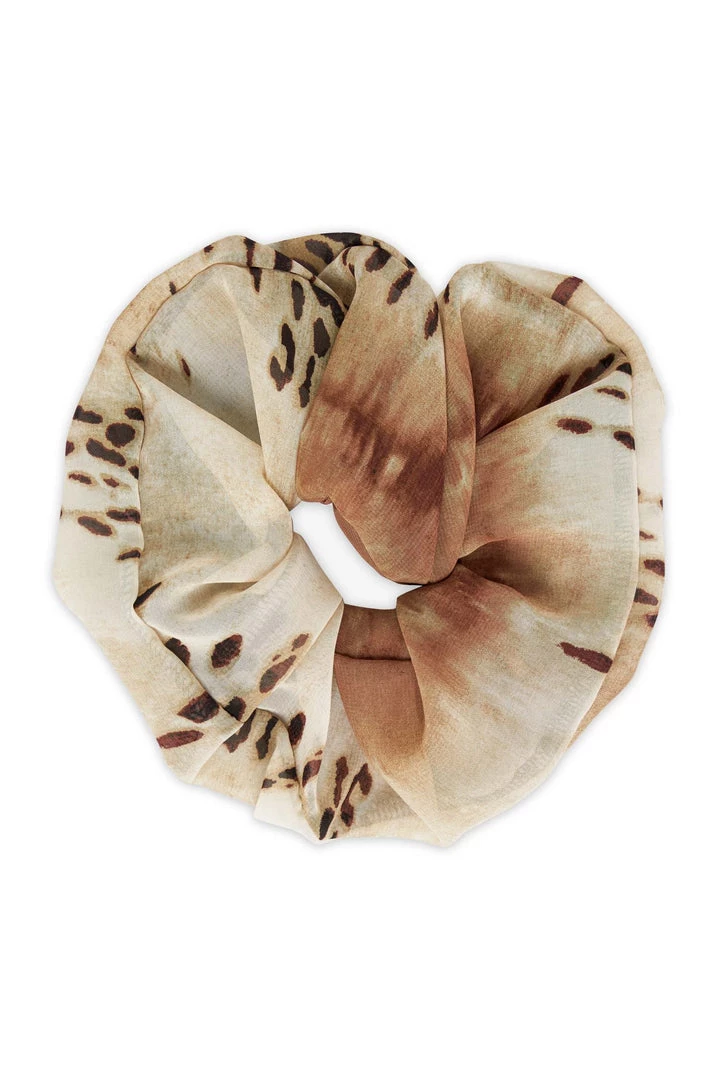 Try it on! Our Maxi scrunchies are 4” Diameter x 3’ Width in different prints match it with the RPCH03 Chiffon A- Line Mini dress for the full look!