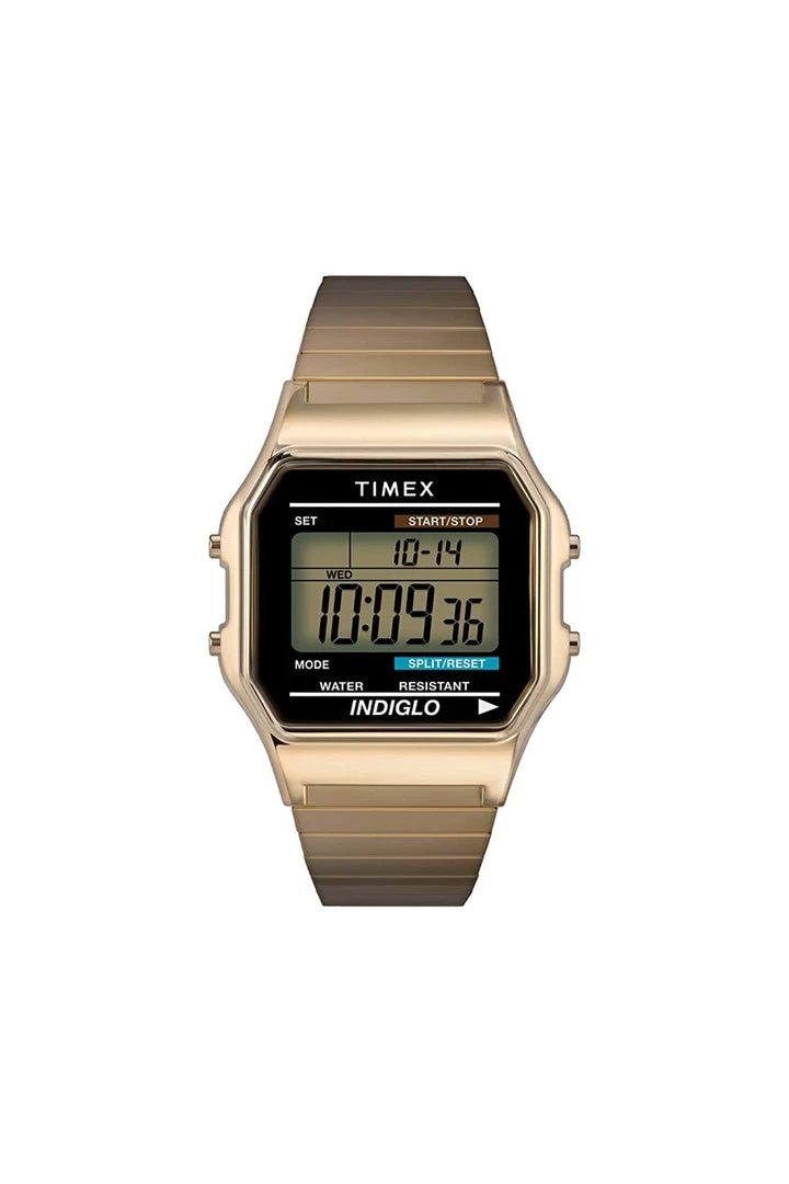 Men’s ultimate 1980’s iconic Timex Classic Quartz Watch with LCD Dial Digital Display and Gold Stainless Steel Bracelet.