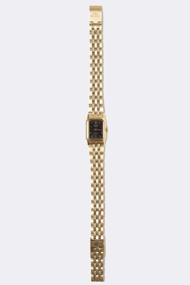 Designed for the timeless classic woman. Orient women’s watch features a gold tone stainless steel fold-over clasp strap with a quartz movement for precise timekeeping and has a finely elegant black dial.