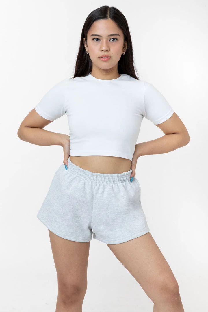 These short shorts are made of our bestselling 14 oz. heavy fleece, making it comfy, easy and versatile. Pair with our matching cropped heavy fleece sweatshirts or with a lightweight tank for indoor lounging. Take your regular size or size up for a looser fit. This style features an elastic waistband, single back pocket.