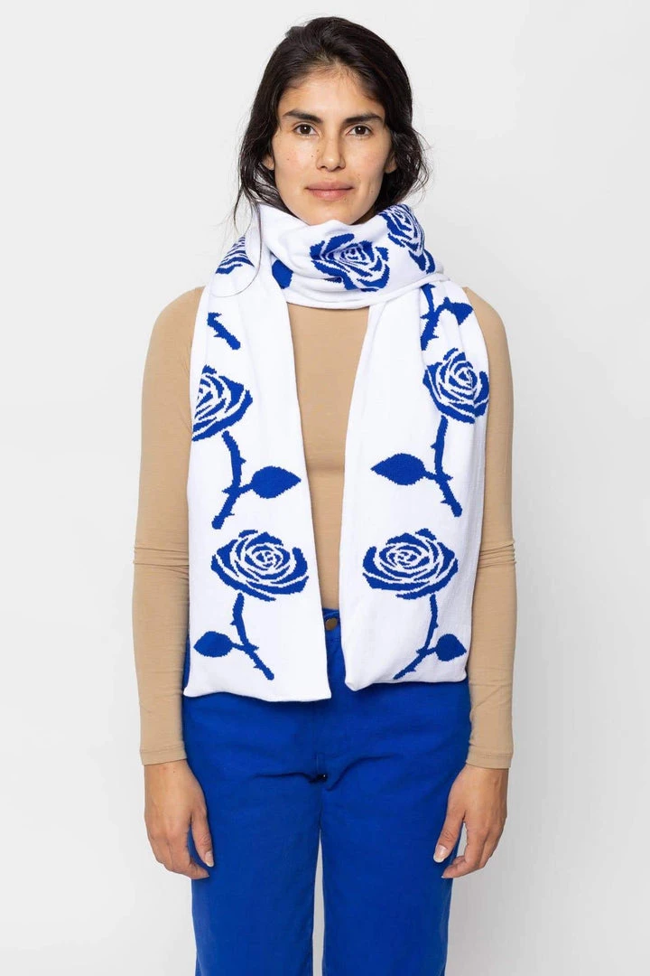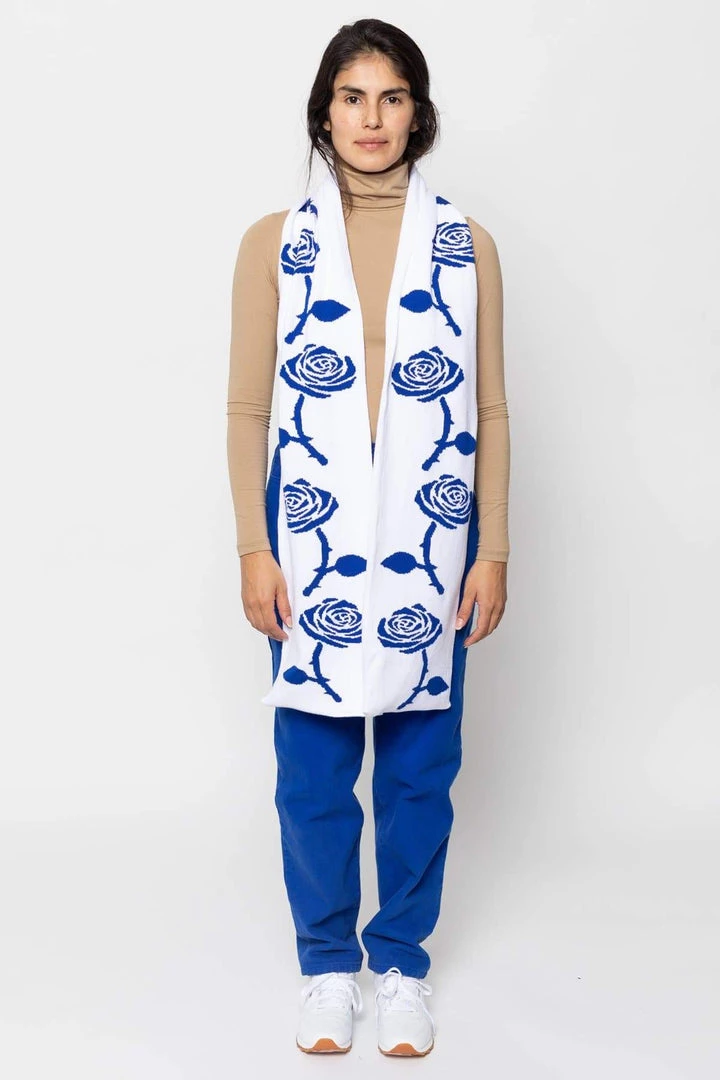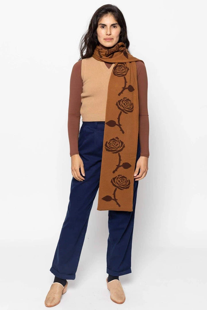 Add a pop of color to your winter layers with our 90s rose motif scarf.