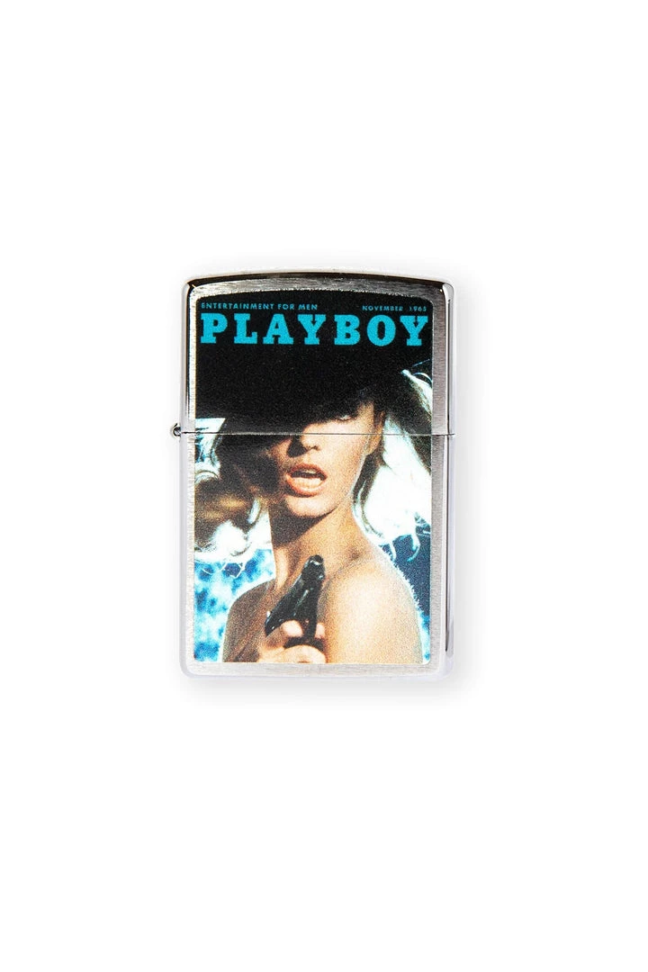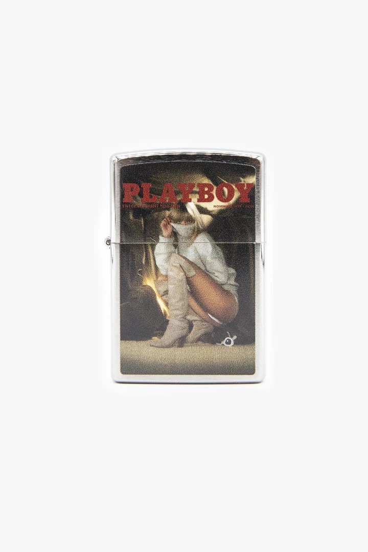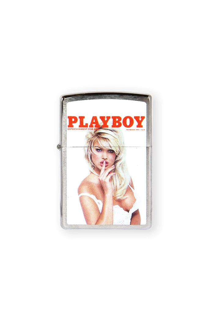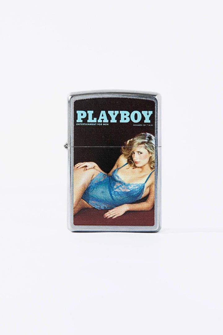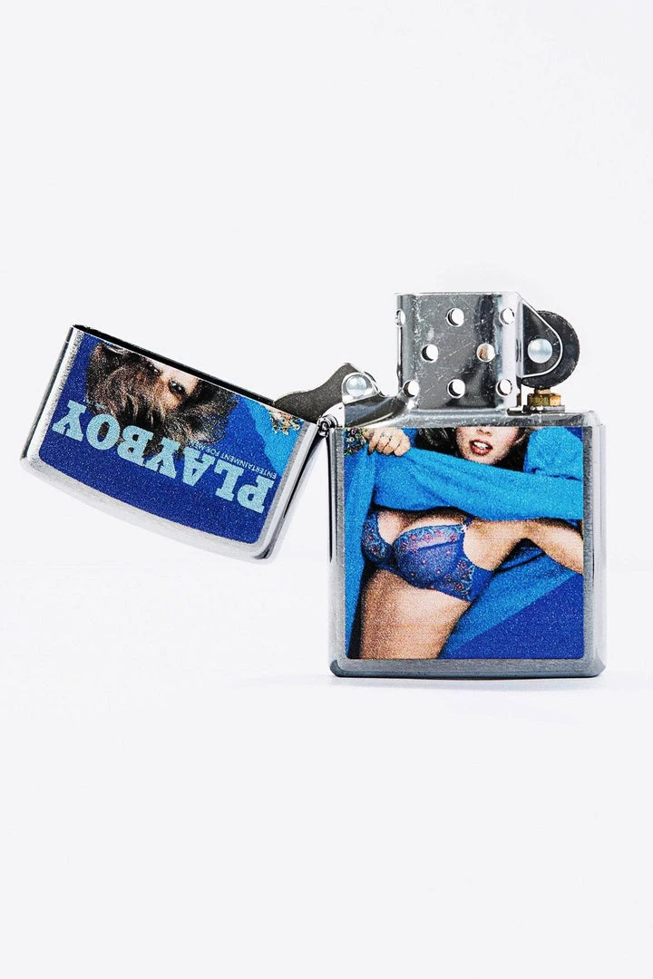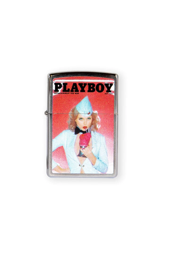 A classic Hugh Hefner Collectors Cover Magazine Playboy Zippo Lighter. This iconic pocket lighter is both functional and collectible. This Brushed Chrome lighter has a unique horizontal brushing technique, which creates a subtle horizontal texture on the front and reverse sides of the model. The sides of the lighter are buffed to a high polish finish for added contrast. The Brushed Chrome finish was created in 1933 and has remained Zippo’s most popular lighter.