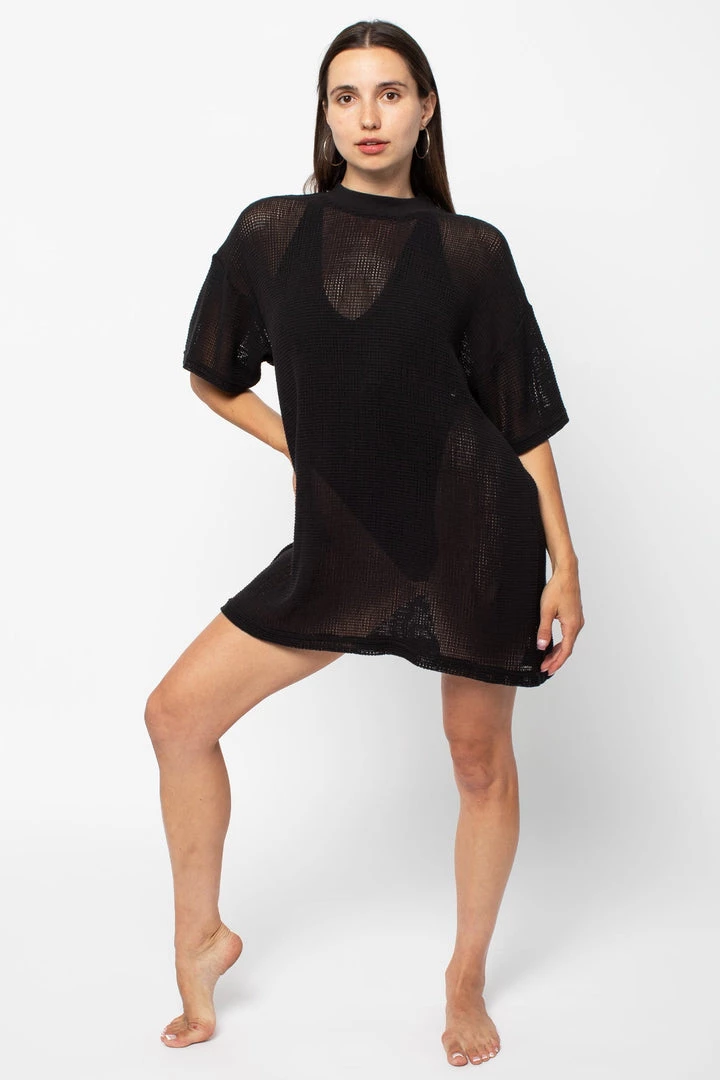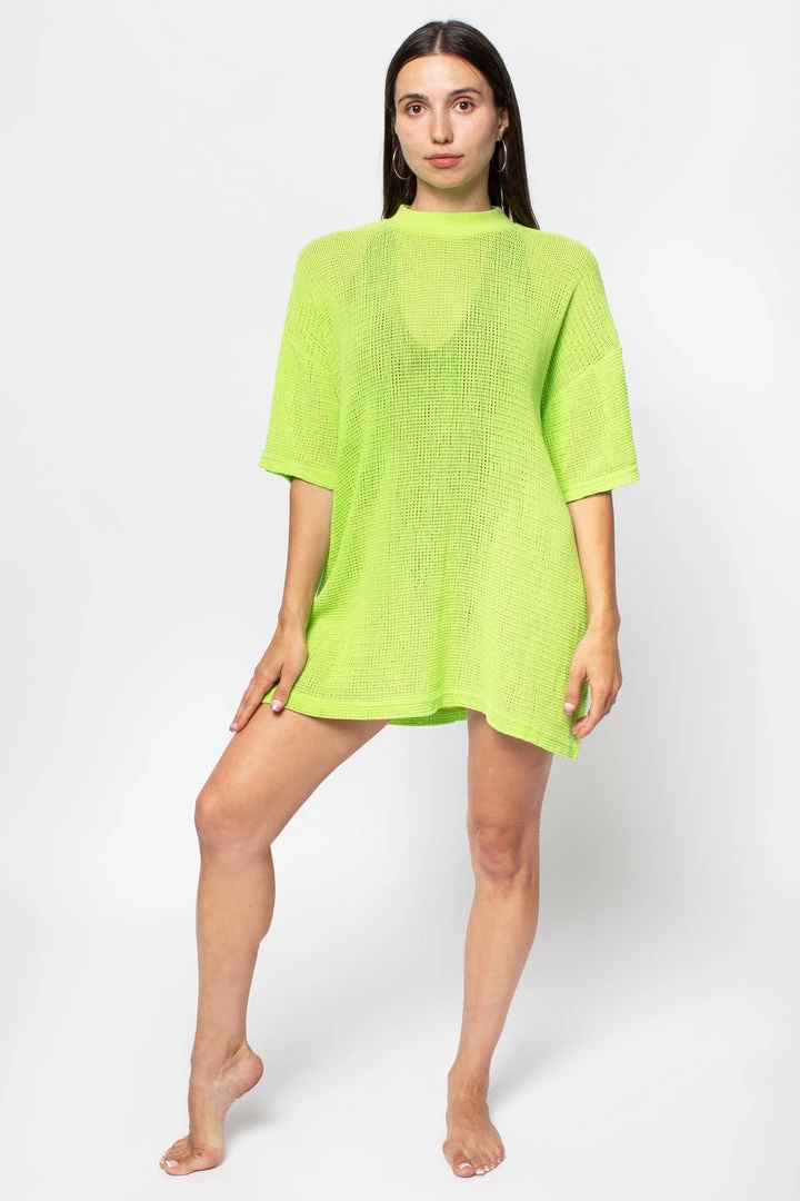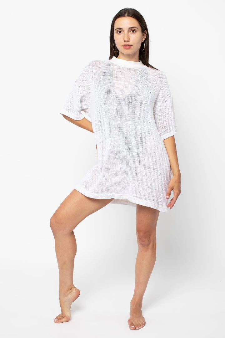 Los Angeles Apparel Women’s RIN500GD – Cotton Fishnet Mock Neck Big Tee