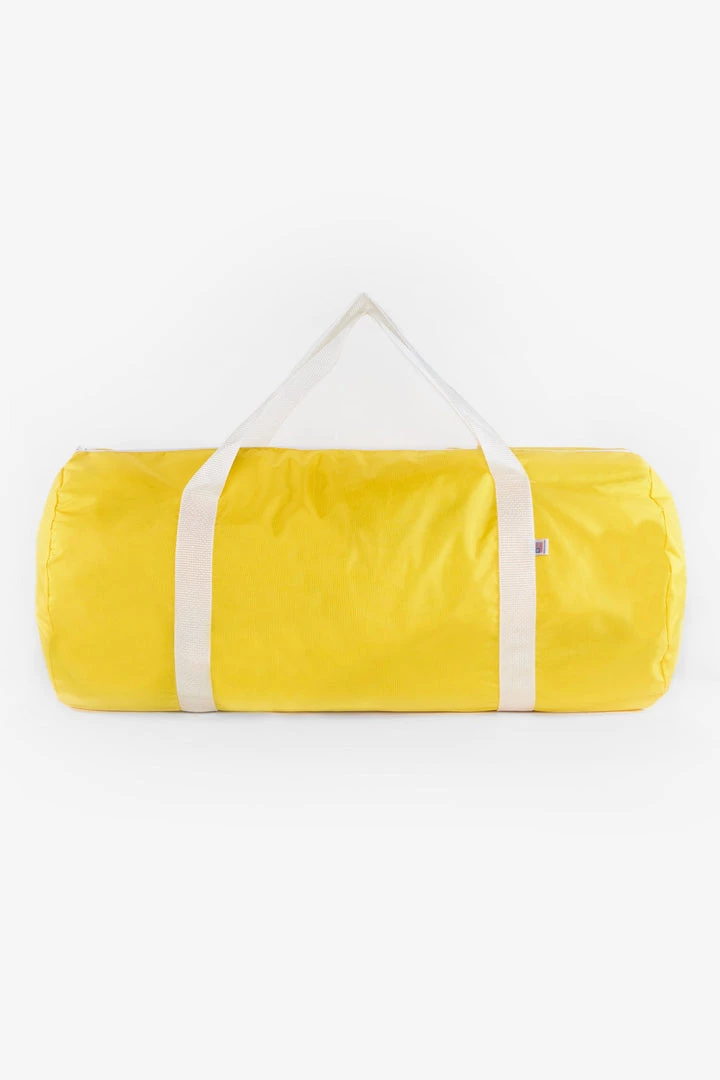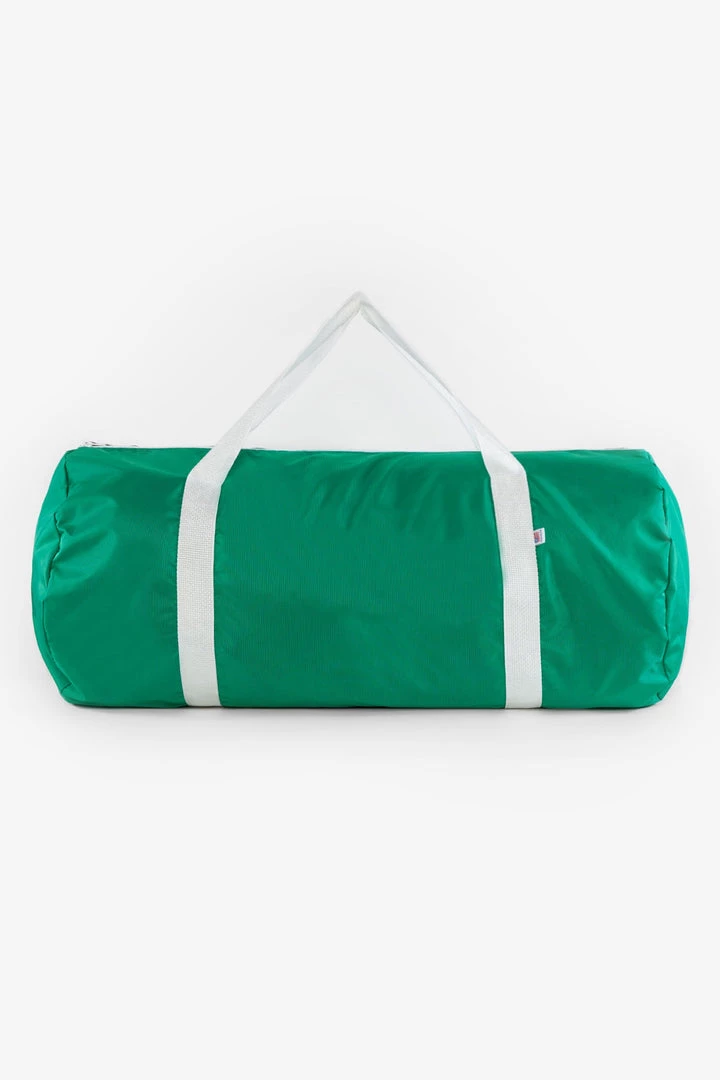 A classic weekender bag made of water-resistant, easy-to-clean nylon. A traditional sporty feel for the gym, traveling, or anywhere you need with durability that lasts. This bag has a height of 13.5″ and bottom width of 40″ with versatile nylon webbing straps that fit comfortable in your hand or over your shoulder. Made in South Central, Los Angeles by workers earning fair wages.