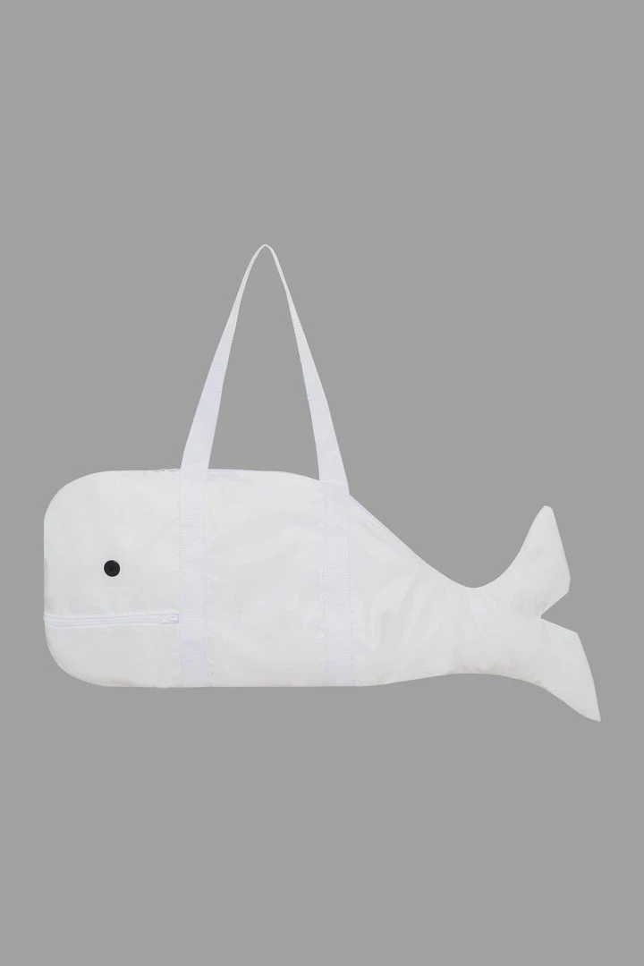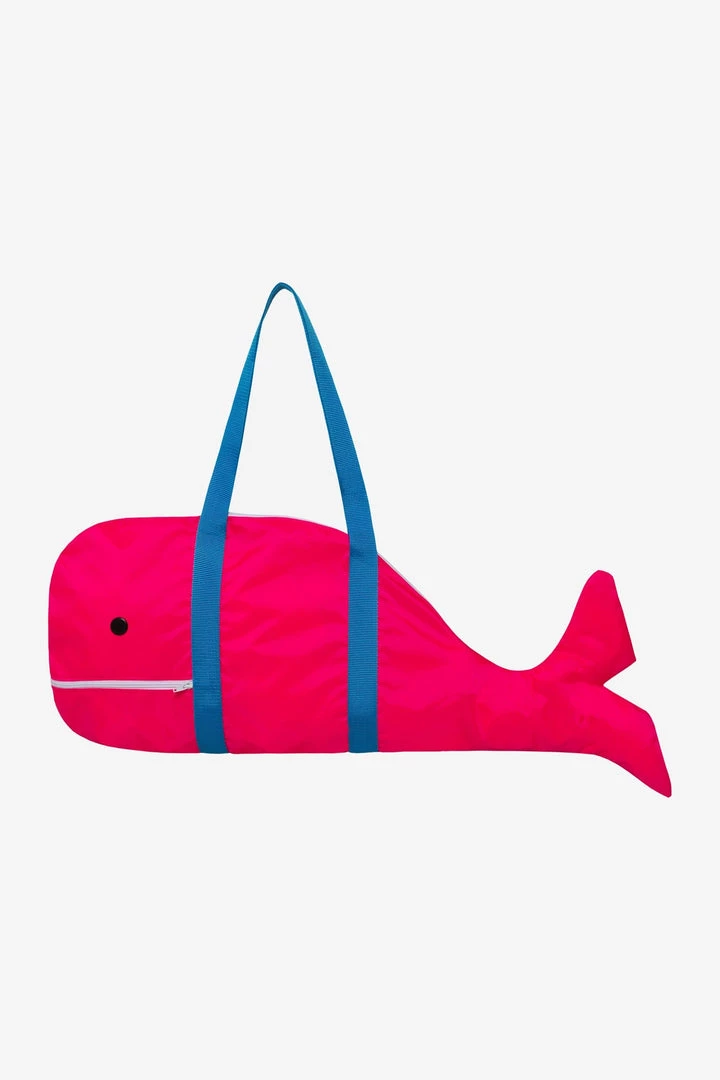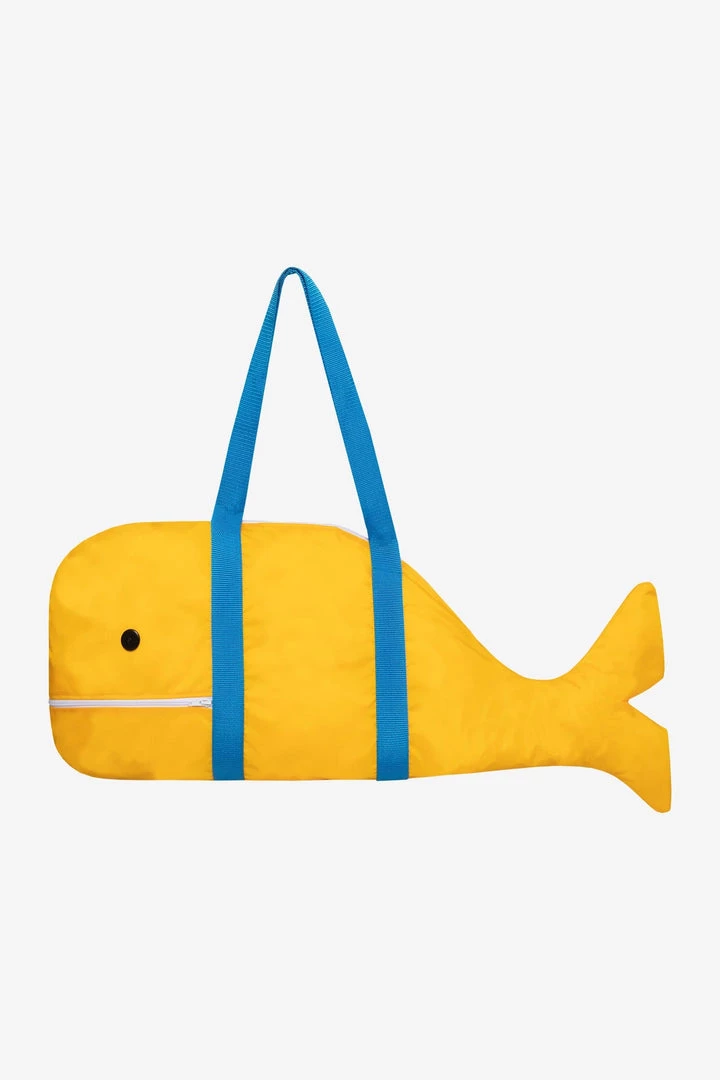 Features button eyes, zipper mouth opening and contrast nylon straps.