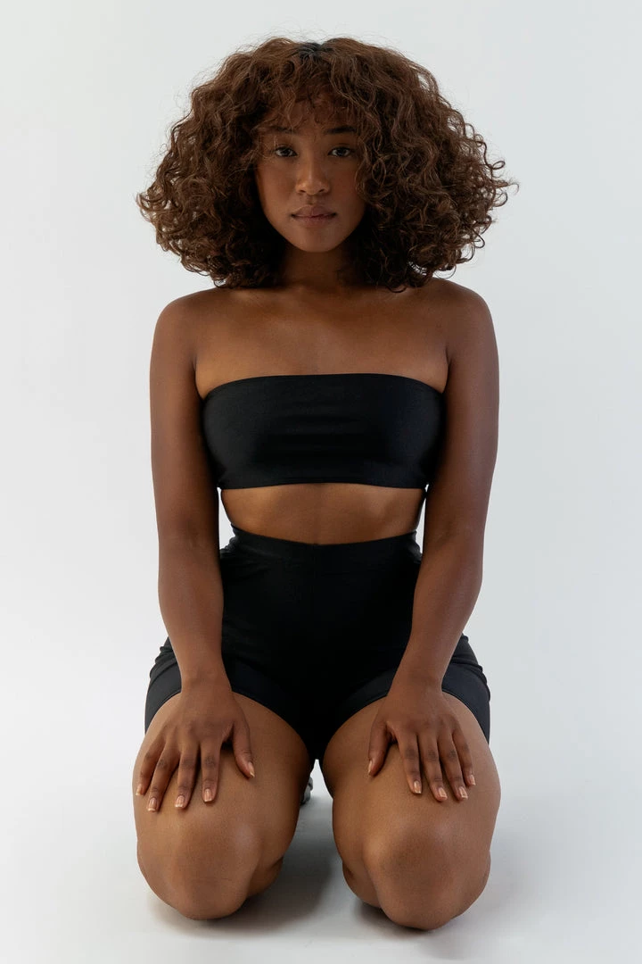This Tube Bikini Top is fully lined so it isn’t see-through when wet and makes a great outfit paired with our shiny bike shorts and leggings. This simple yet statement making top is the perfect in-between length to wear as a bikini or a summer top with jeans or your favorite pants. This style features elastic at the top and bottom to keep it in place while swimming and can even withstand cartwheels (tested). Made in South Central, Los Angeles by workers earning fair wages.