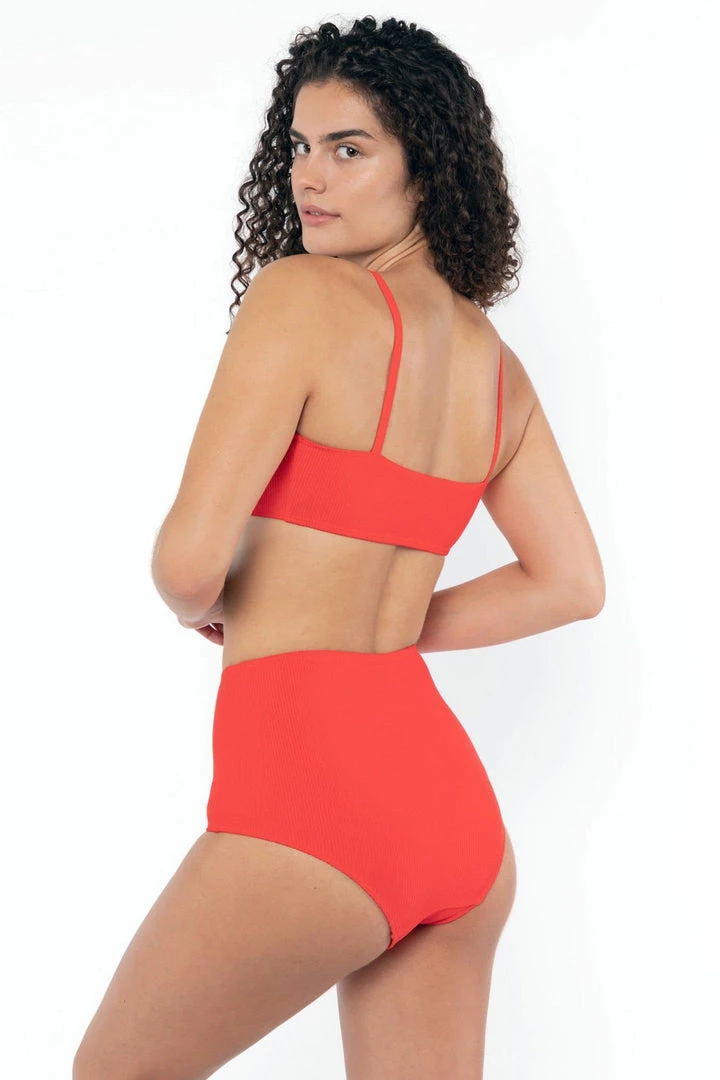 This iconic swim silhouette has been modified for a more minimal and modern look. We have removed the paneled design, yet strategically placed the seams so they highlight your curves while the vertical rib elongates and gives a flattened appearance. These swim bottoms have a classic high waist no matter your height. Fully lined. Match this style with our RRS075 Ribbed Bikini Crop Top.