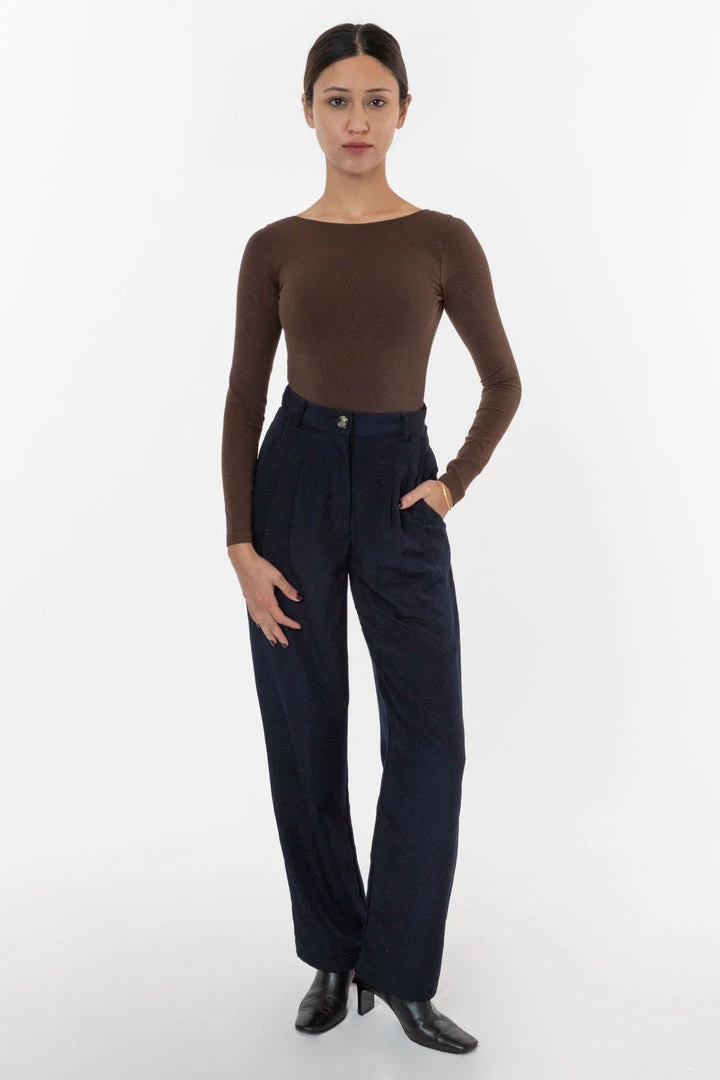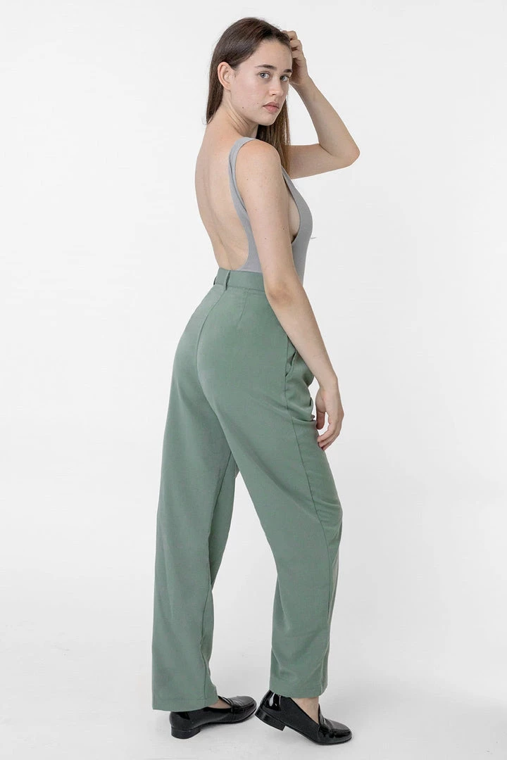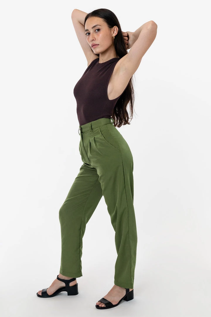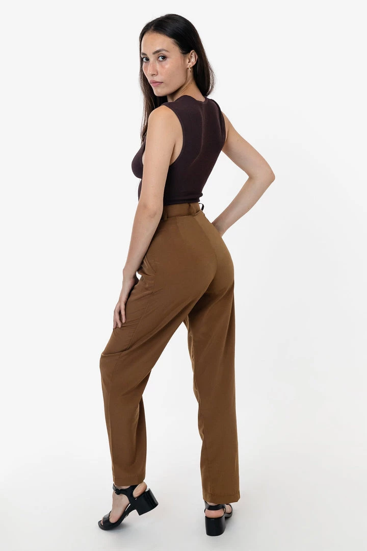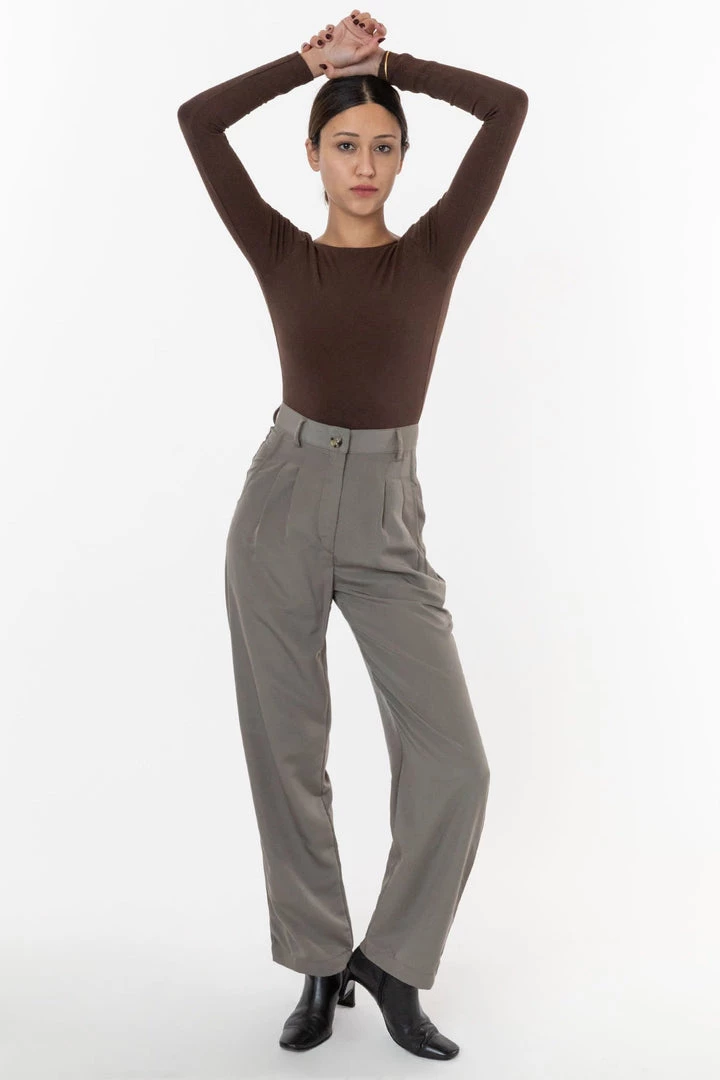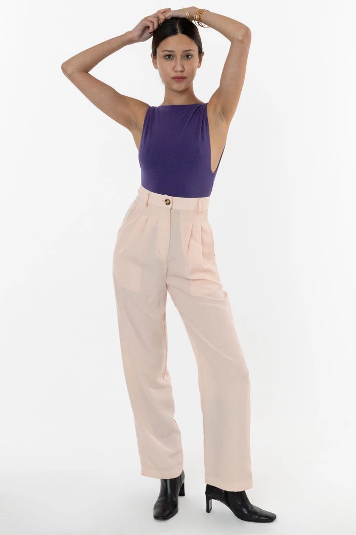 Our updated take on your tailored favorite. The new Poly Pleated Pant features a wider, straight leg with the classic high-waisted fit, front pleats, back darts and 2 side pockets. Made of a lustrous polyester that shines and highlights for an elegant look. The front-zip fly finishes with a tortoise button closure and this style features belt loops so you can style them with your favorite belt. Pair these pants with anything from a bodysuit, blouse or crop top for an effortlessly, polished outfit. The breezy leg width makes this style comfortable and moveable with a weight suitable for all temperatures year-round.