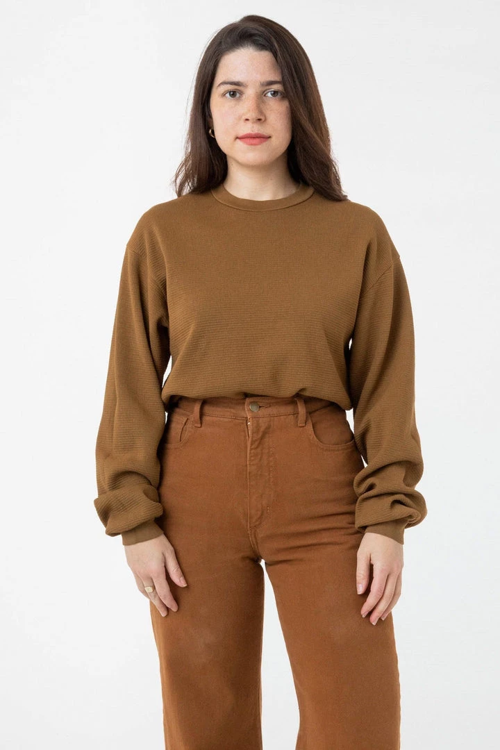 This heavyweight thermal will keep you warm while remaining versatile. This piece goes beyond the traditional lightweight thermal you would layer to suit modern needs. This long sleeve thermal is almost like a sweater on its own in thickness and bulk. Unlike most thermals that shrink in the wash, ours is garment dyed and laundered so it is shrink-free. You can size down for a more fitted look or try your regular size for an updated, boxier fit. Pair this with sweatpants and sweatshirts from our Heavy Fleece series and you are ready for winter.